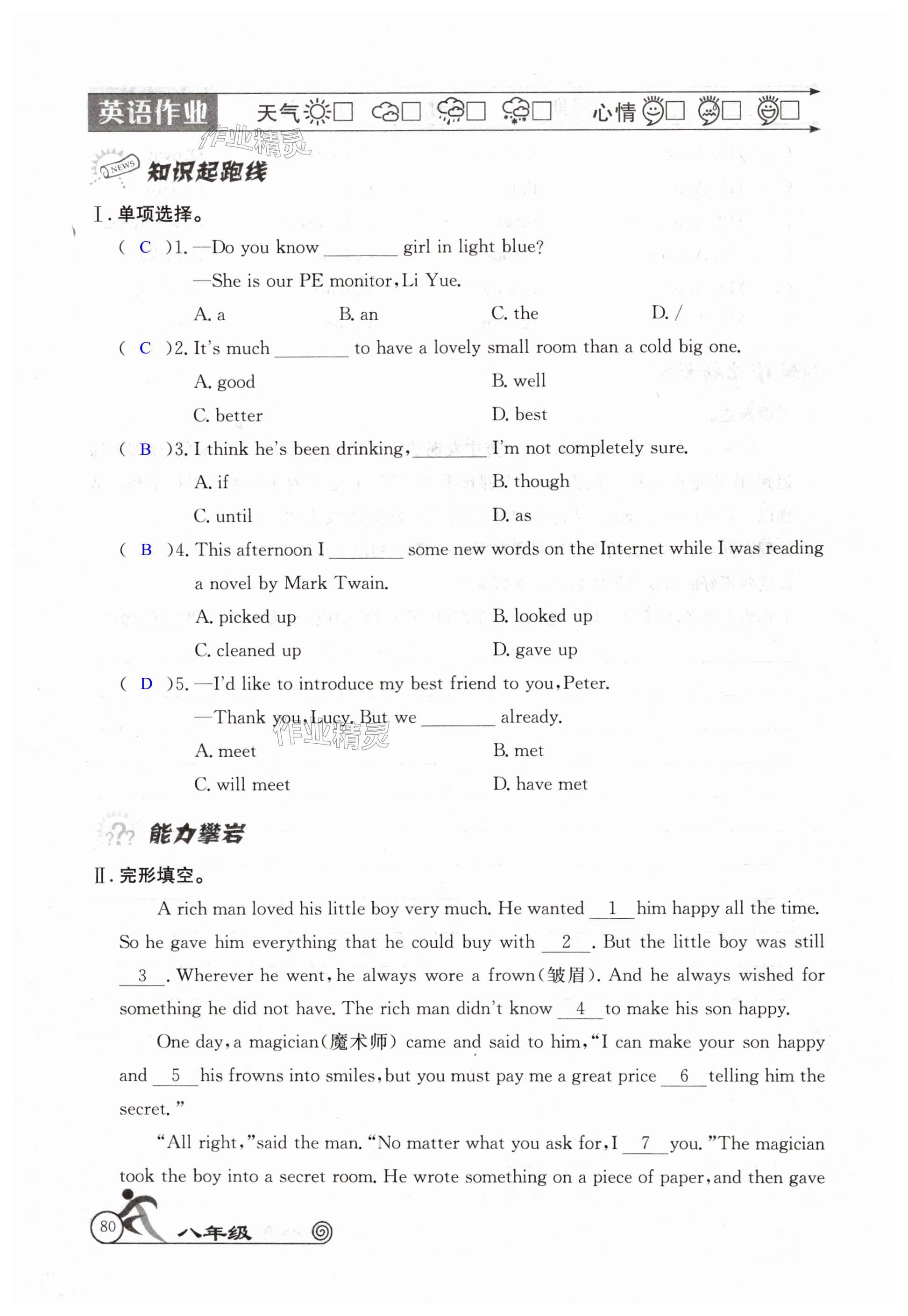 注:目前有些书本章节名称可能整理的还不是很完善,但都是按照顺序排列的,请同学们按照顺序仔细查找。练习册 2024年快乐假期暑假作业八年级语数英物B版合订本人教版 答案主要是用来给同学们做完题方便对答案用的,请勿直接抄袭。