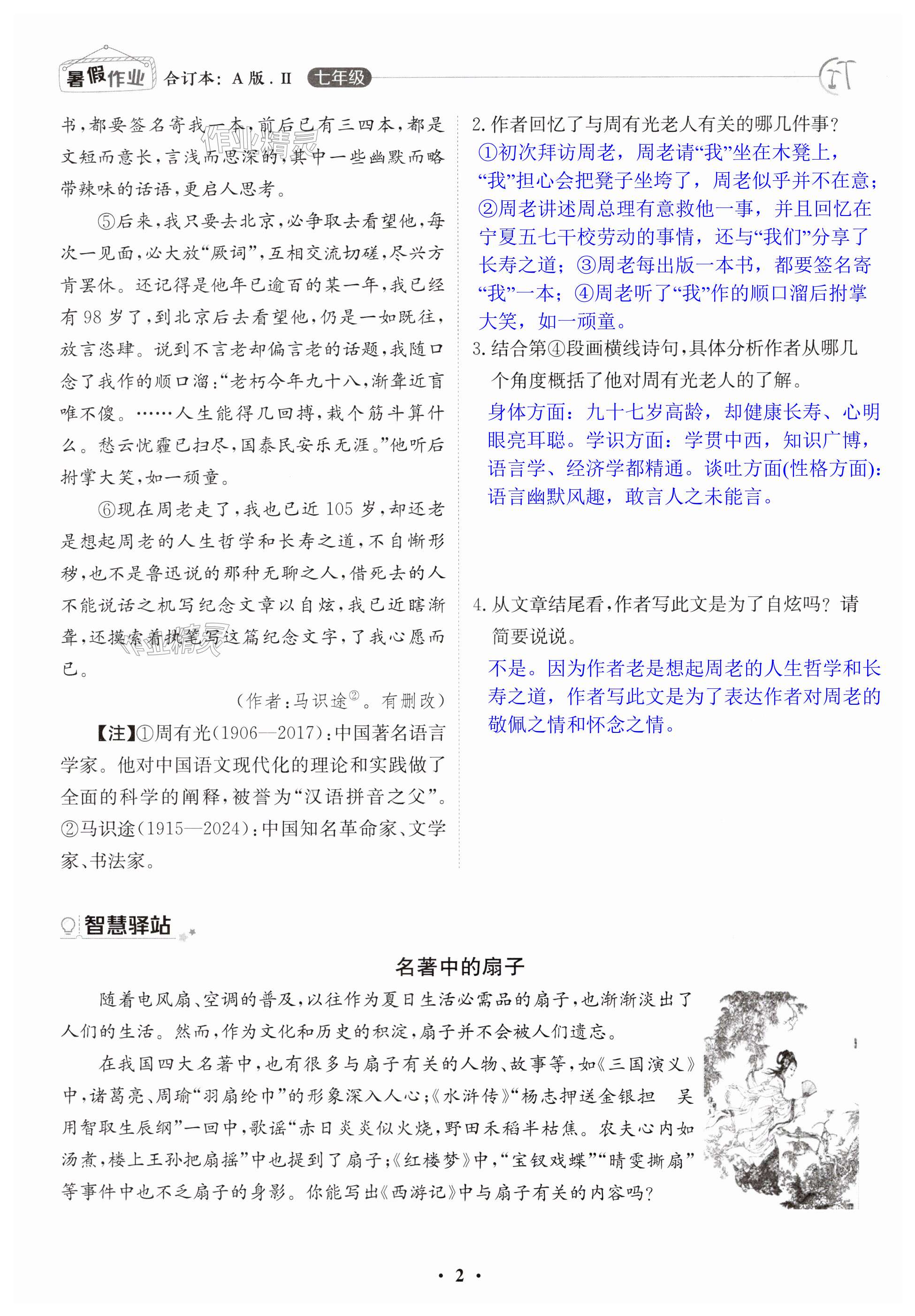 2024年暑假作业江西高校出版社七年级合订本A版Ⅱ