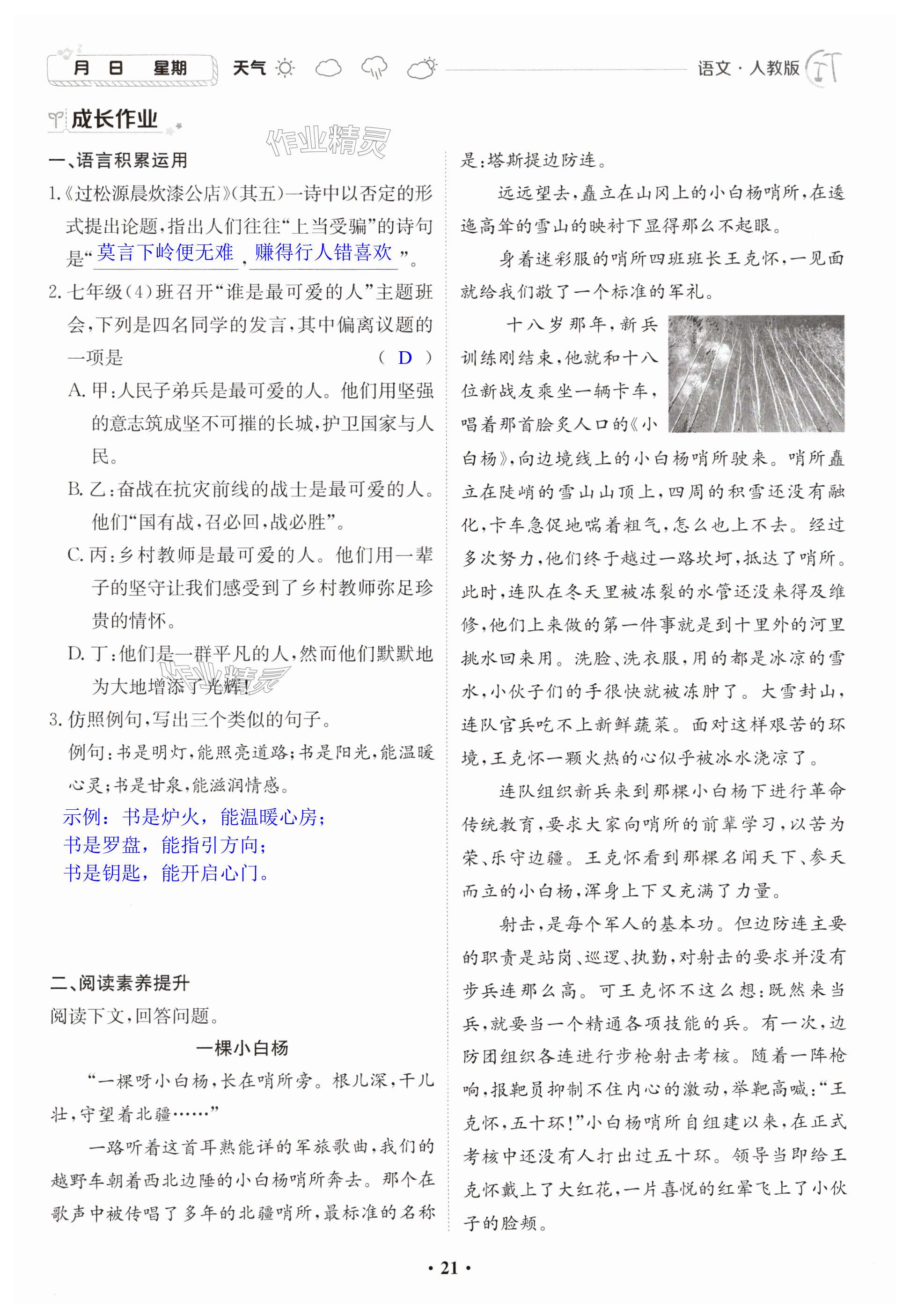 注:目前有些书本章节名称可能整理的还不是很完善,但都是按照顺序排列的,请同学们按照顺序仔细查找。练习册 2024年暑假作业江西高校出版社七年级合订本A版Ⅱ 答案主要是用来给同学们做完题方便对答案用的,请勿直接抄袭。