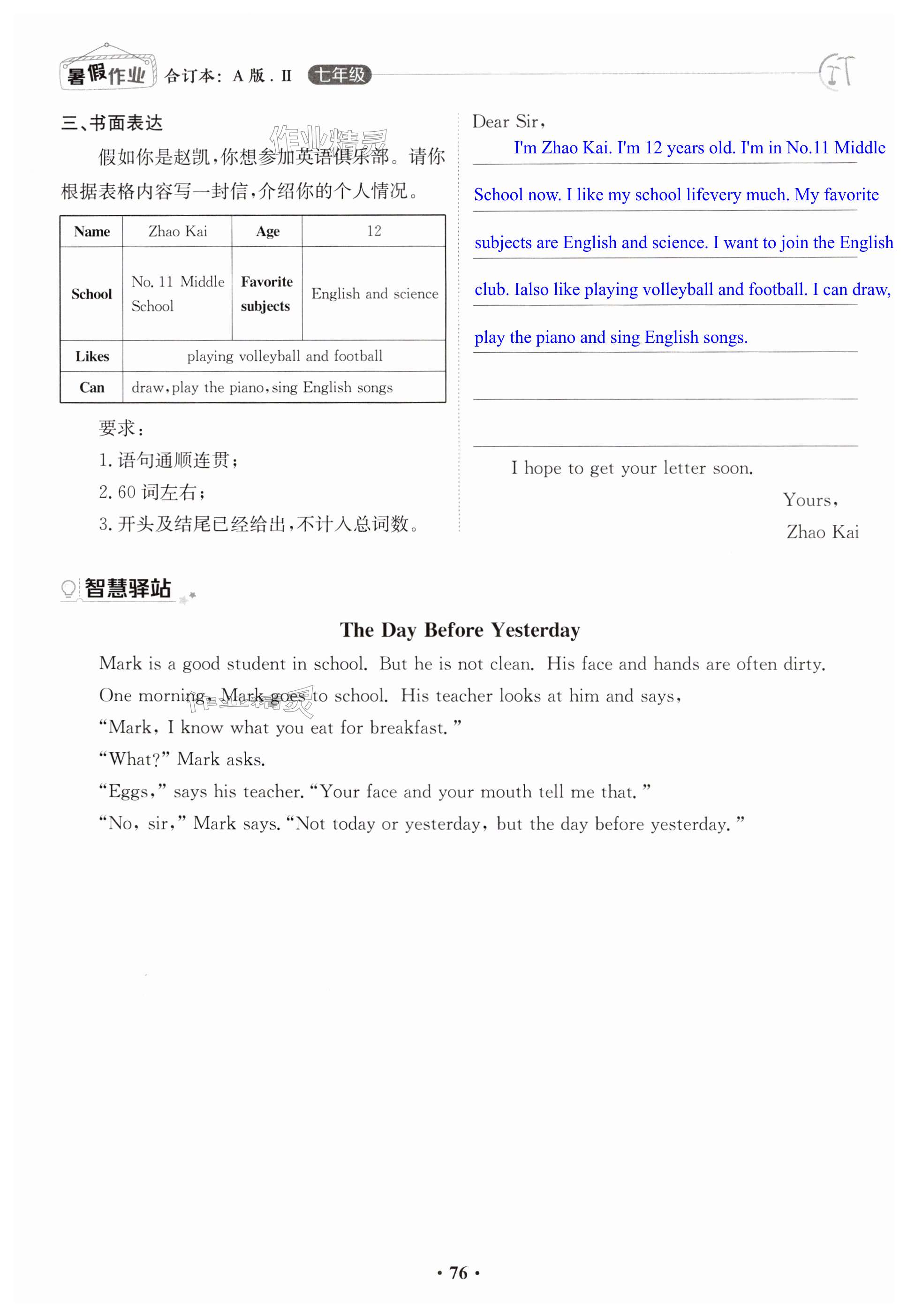 2024年暑假作业江西高校出版社七年级合订本A版Ⅱ