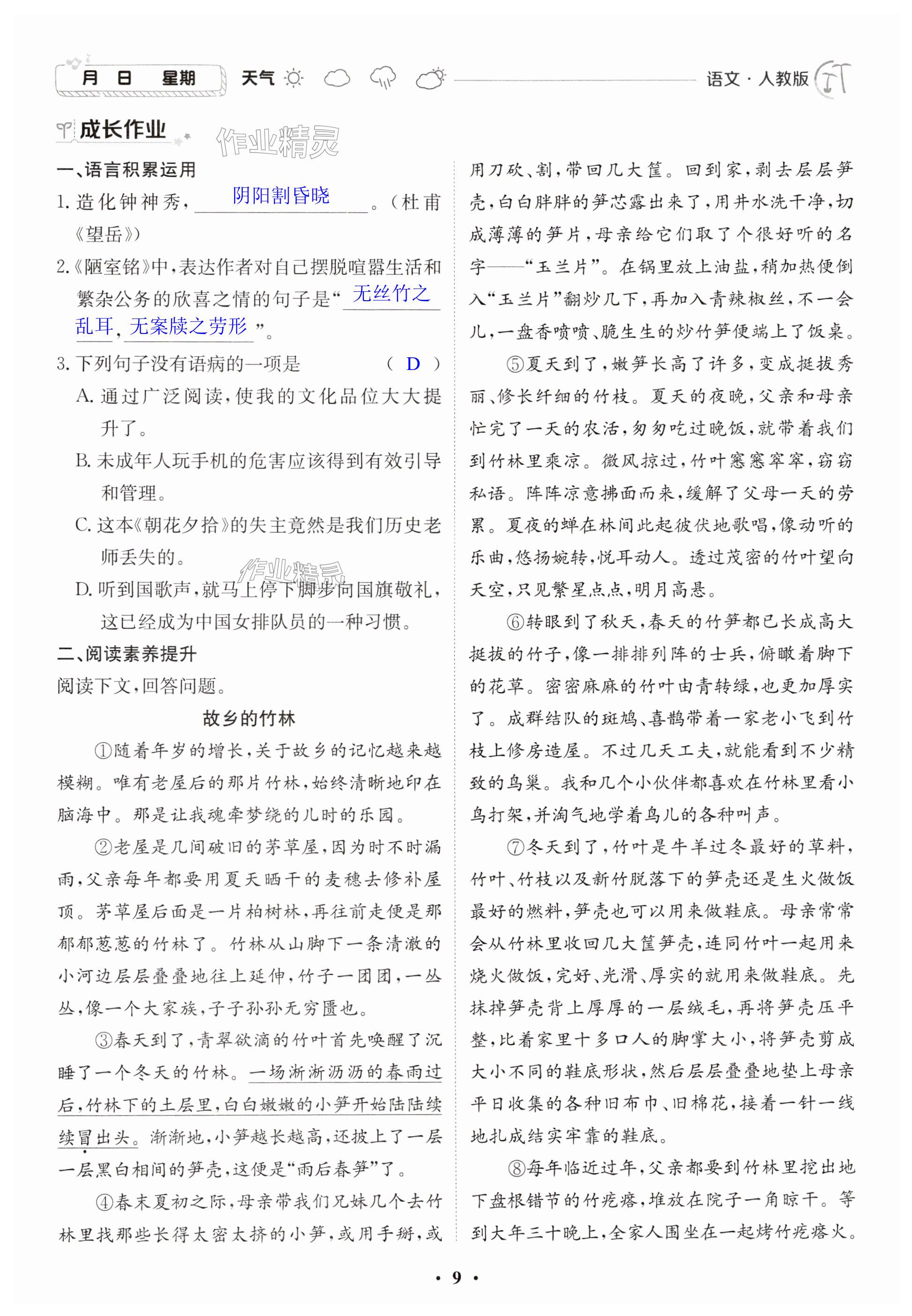 注:目前有些书本章节名称可能整理的还不是很完善,但都是按照顺序排列的,请同学们按照顺序仔细查找。练习册 2024年暑假作业江西高校出版社七年级合订本A版Ⅱ 答案主要是用来给同学们做完题方便对答案用的,请勿直接抄袭。