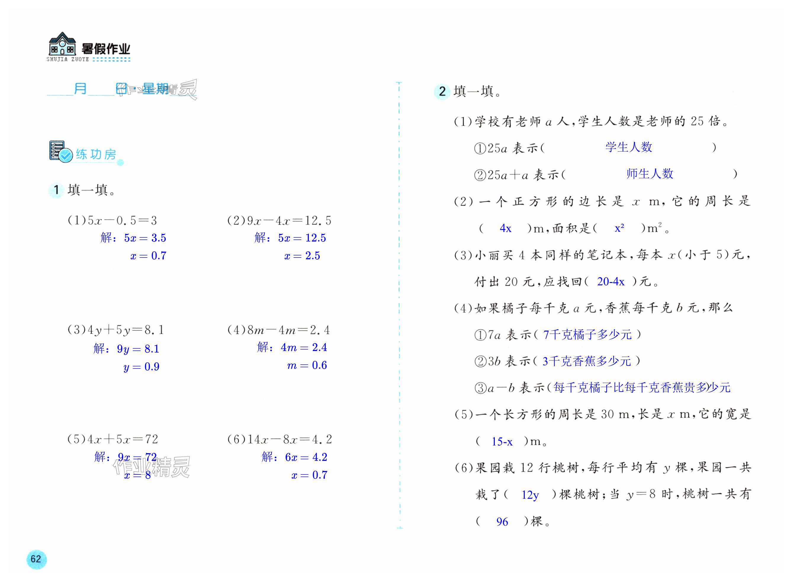 注:目前有些书本章节名称可能整理的还不是很完善,但都是按照顺序排列的,请同学们按照顺序仔细查找。练习册 2024年暑假作业五年级数学北师大版安徽少年儿童出版社 答案主要是用来给同学们做完题方便对答案用的,请勿直接抄袭。