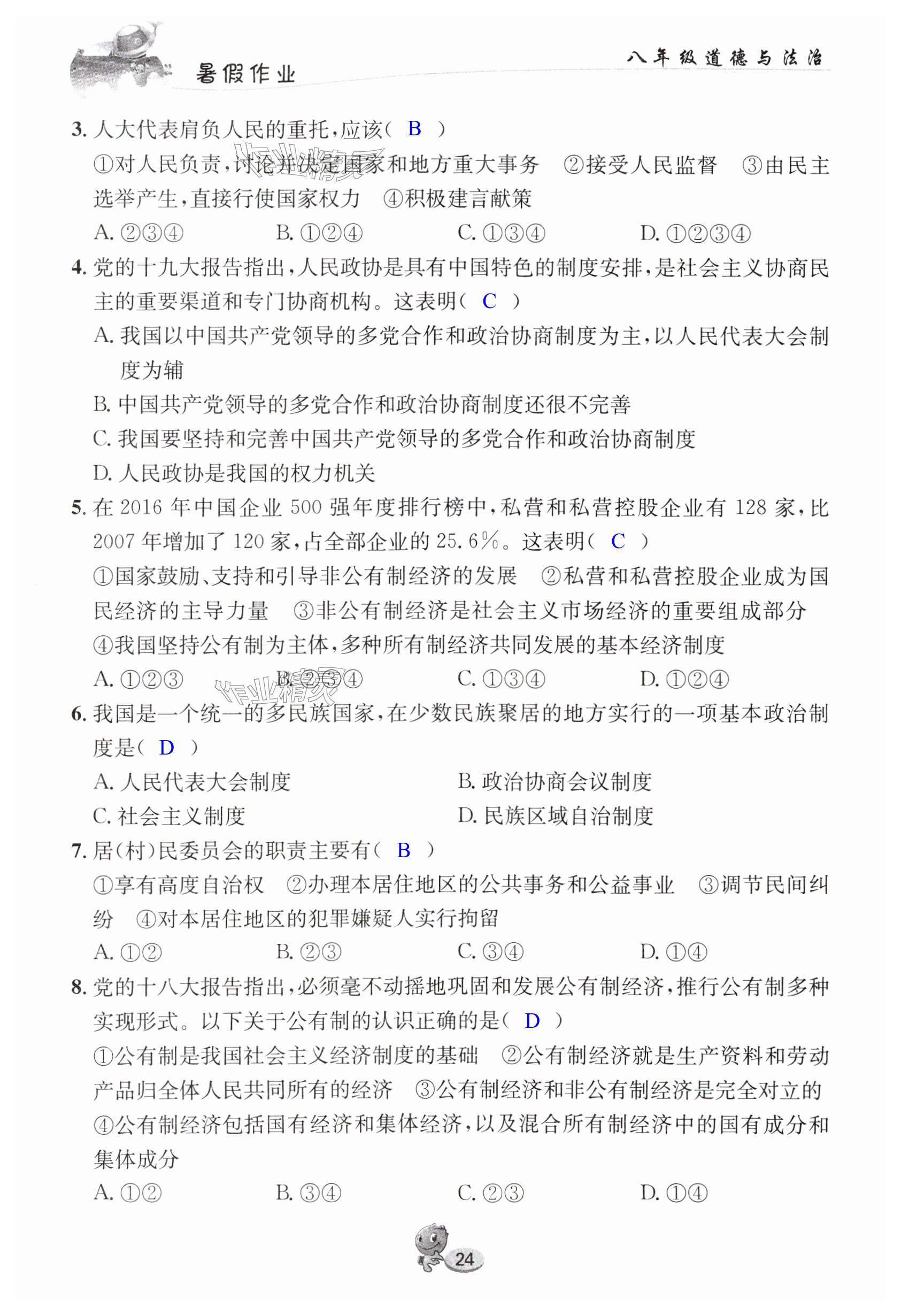 注:目前有些书本章节名称可能整理的还不是很完善,但都是按照顺序排列的,请同学们按照顺序仔细查找。练习册 2024年暑假作业长江出版社八年级道德与法治人教版 答案主要是用来给同学们做完题方便对答案用的,请勿直接抄袭。