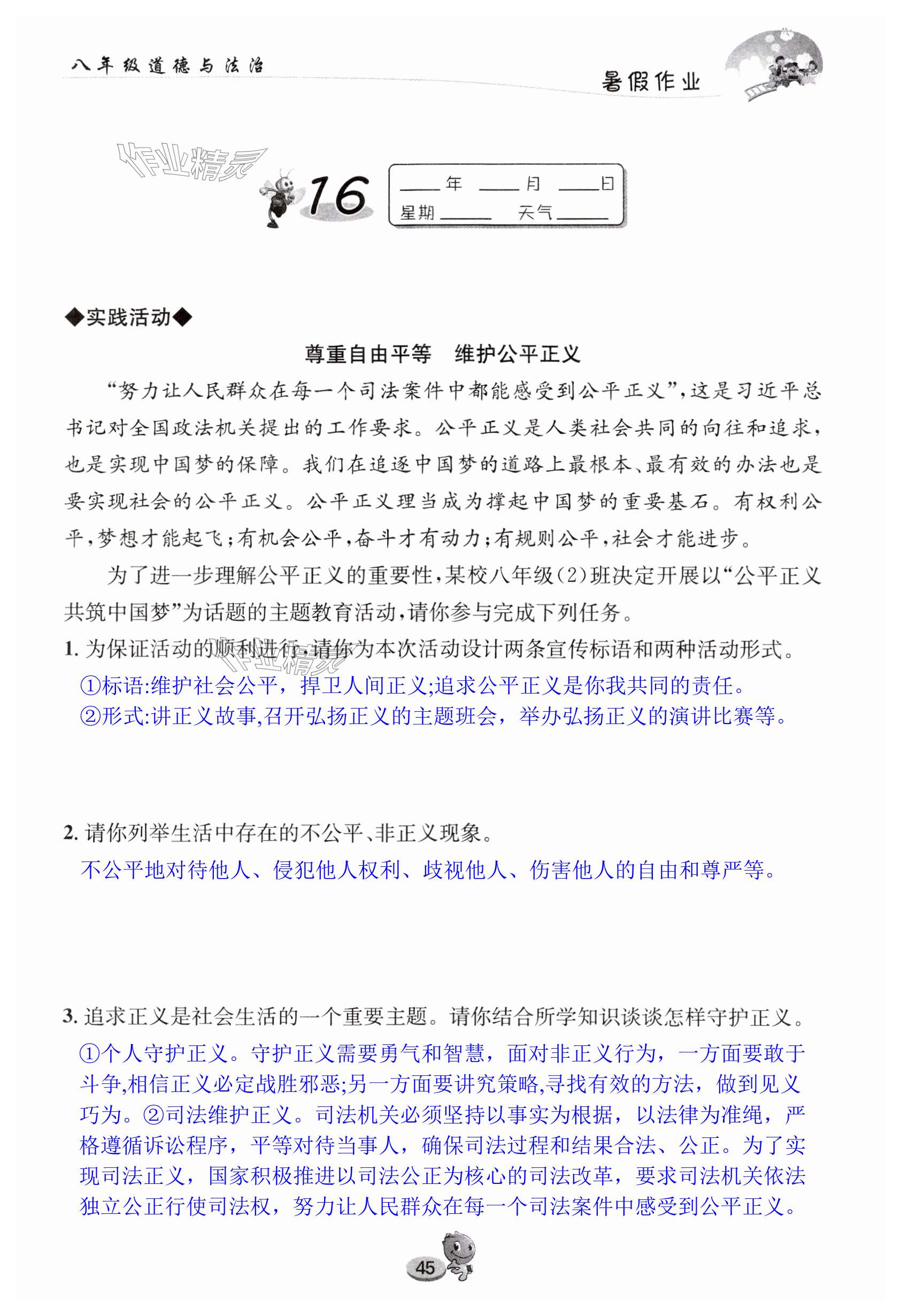注:目前有些书本章节名称可能整理的还不是很完善,但都是按照顺序排列的,请同学们按照顺序仔细查找。练习册 2024年暑假作业长江出版社八年级道德与法治人教版 答案主要是用来给同学们做完题方便对答案用的,请勿直接抄袭。
