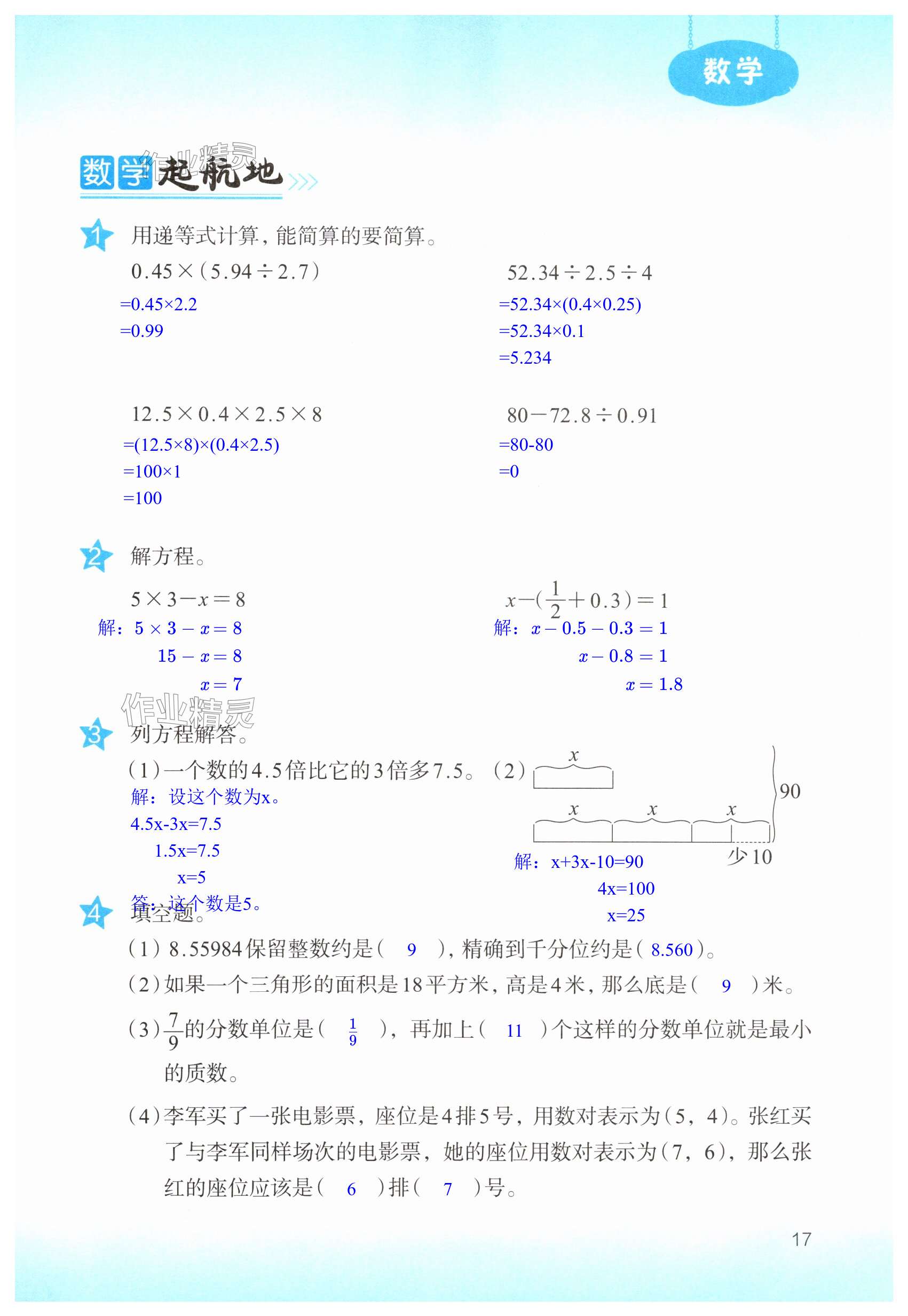 注:目前有些书本章节名称可能整理的还不是很完善,但都是按照顺序排列的,请同学们按照顺序仔细查找。练习册 2024年暑假学习乐园浙江科学技术出版社五年级 答案主要是用来给同学们做完题方便对答案用的,请勿直接抄袭。