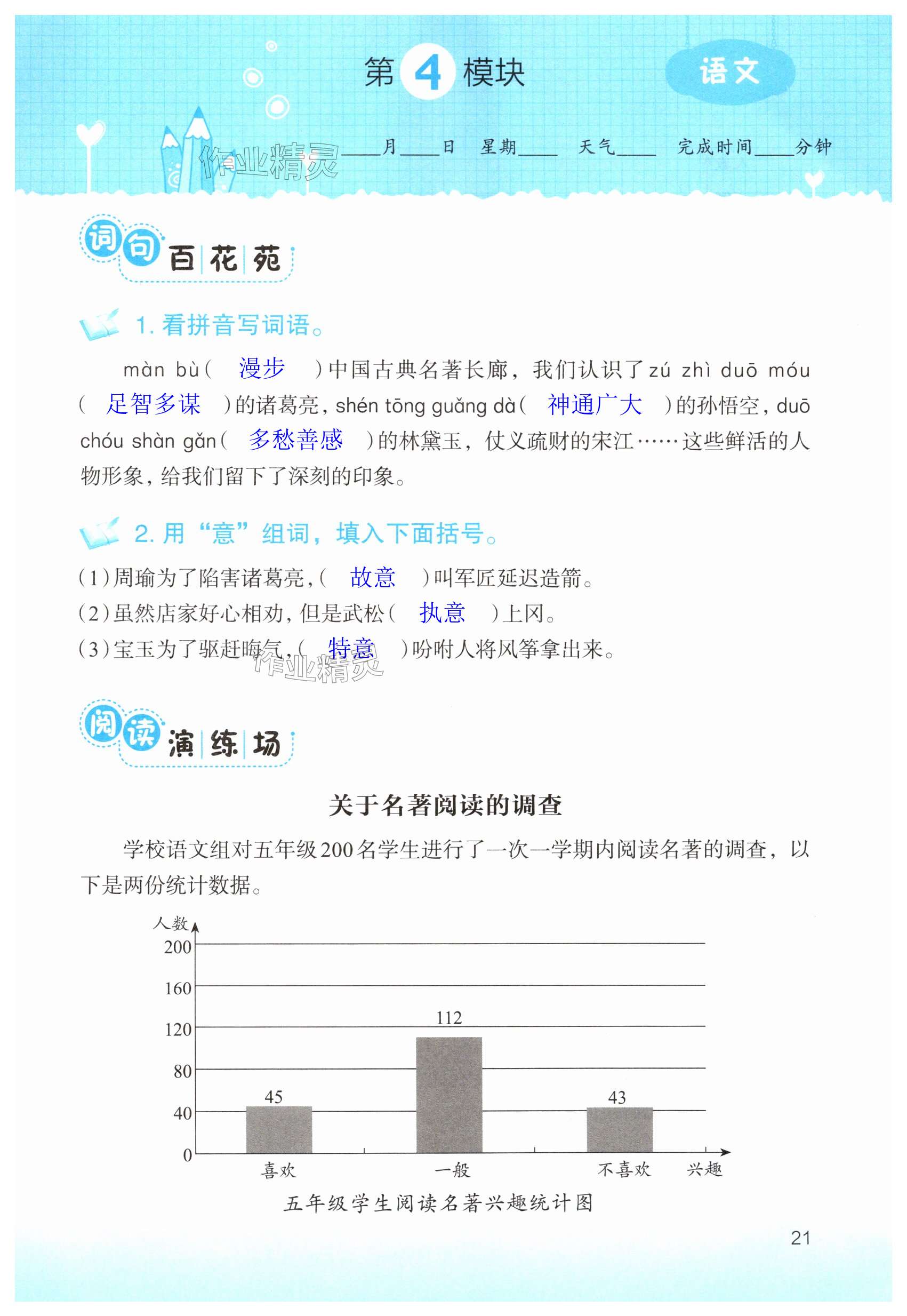注:目前有些书本章节名称可能整理的还不是很完善,但都是按照顺序排列的,请同学们按照顺序仔细查找。练习册 2024年暑假学习乐园浙江科学技术出版社五年级 答案主要是用来给同学们做完题方便对答案用的,请勿直接抄袭。