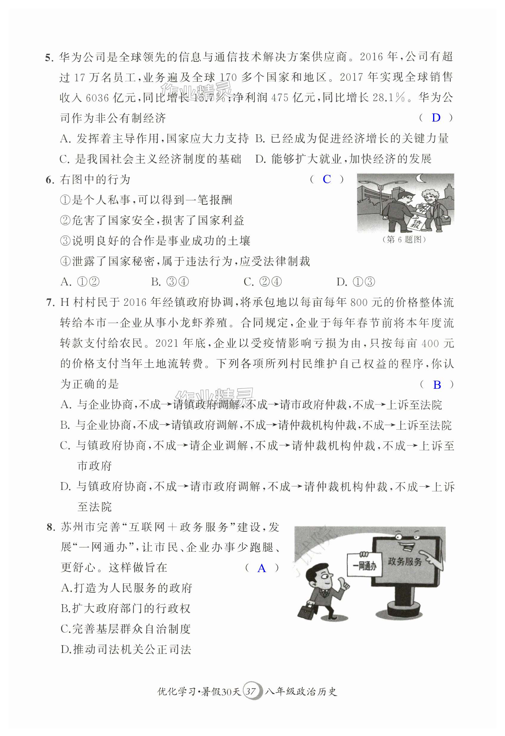 注:目前有些书本章节名称可能整理的还不是很完善,但都是按照顺序排列的,请同学们按照顺序仔细查找。练习册 2024年优化学习暑假30天八年级政治历史河海大学出版社 答案主要是用来给同学们做完题方便对答案用的,请勿直接抄袭。