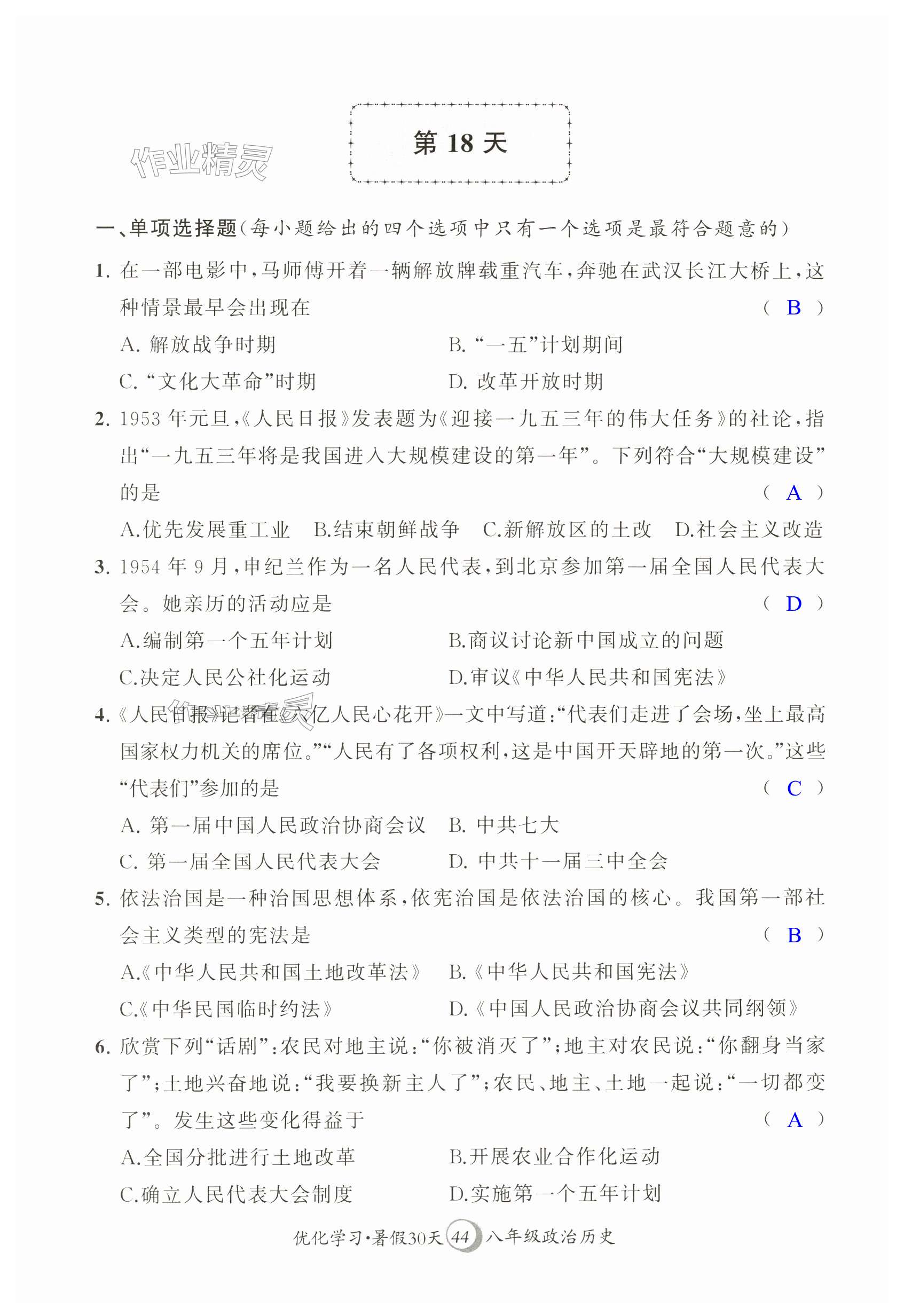 注:目前有些书本章节名称可能整理的还不是很完善,但都是按照顺序排列的,请同学们按照顺序仔细查找。练习册 2024年优化学习暑假30天八年级政治历史河海大学出版社 答案主要是用来给同学们做完题方便对答案用的,请勿直接抄袭。