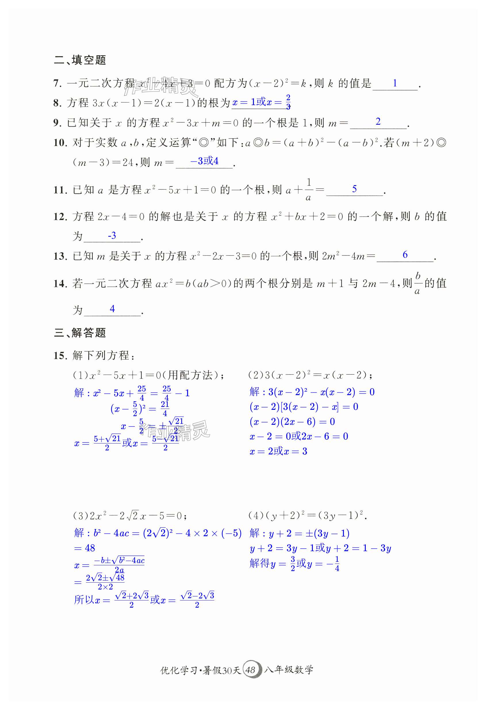2024年优化学习暑假30天八年级数学河海大学出版社