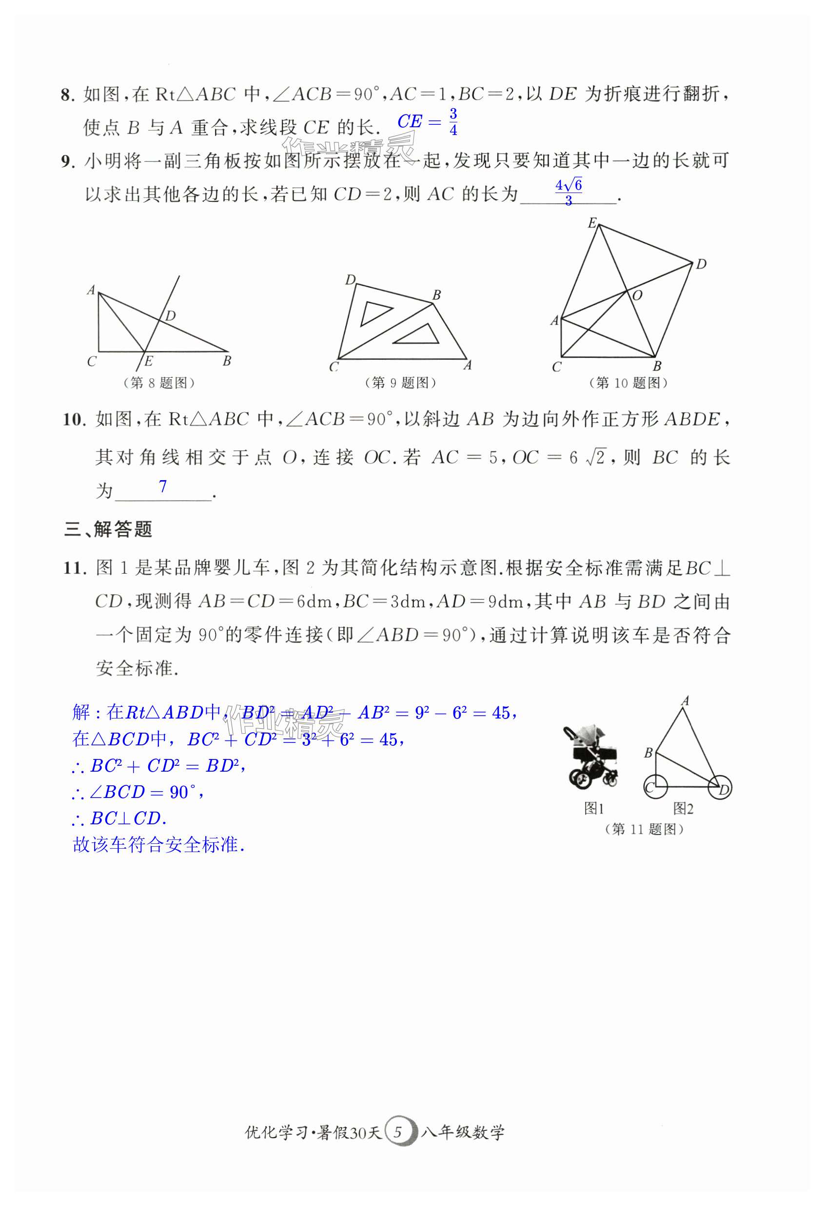 2024年优化学习暑假30天八年级数学河海大学出版社