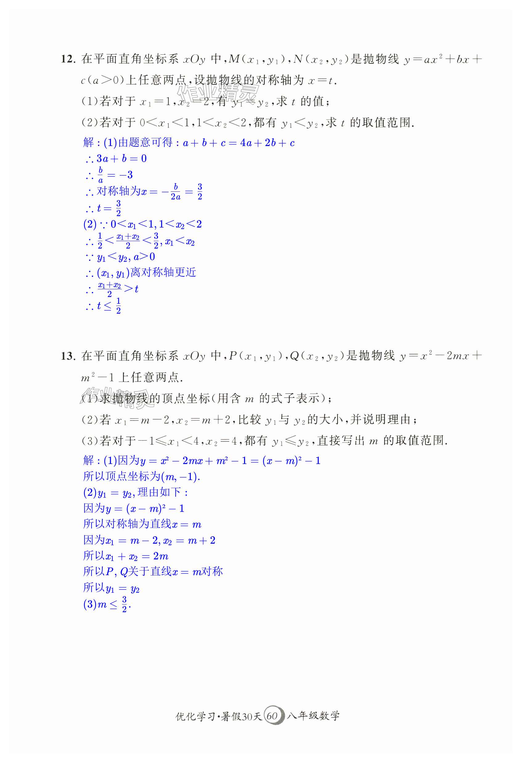 2024年优化学习暑假30天八年级数学河海大学出版社