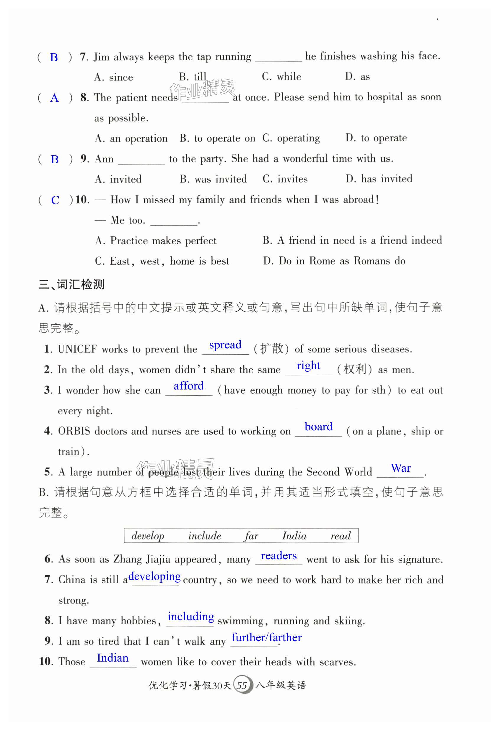 2024年优化学习暑假30天八年级英语河海大学出版社
