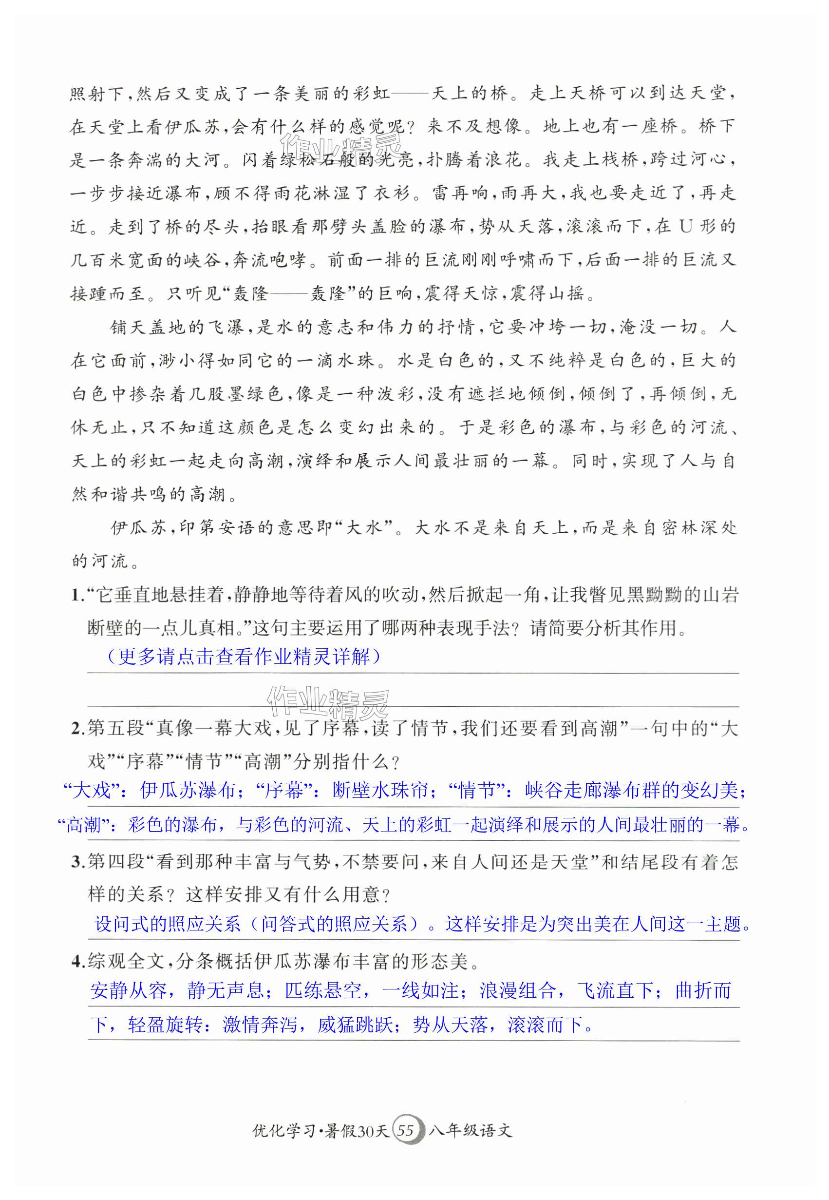 注:目前有些书本章节名称可能整理的还不是很完善,但都是按照顺序排列的,请同学们按照顺序仔细查找。练习册 2024年优化学习暑假30天八年级语文河海大学出版社 答案主要是用来给同学们做完题方便对答案用的,请勿直接抄袭。