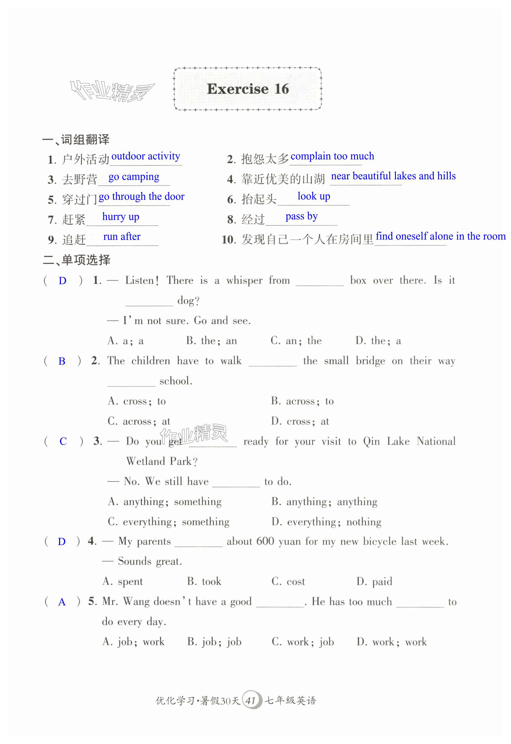 注:目前有些书本章节名称可能整理的还不是很完善,但都是按照顺序排列的,请同学们按照顺序仔细查找。练习册 2024年优化学习暑假30天七年级英语河海大学出版社 答案主要是用来给同学们做完题方便对答案用的,请勿直接抄袭。