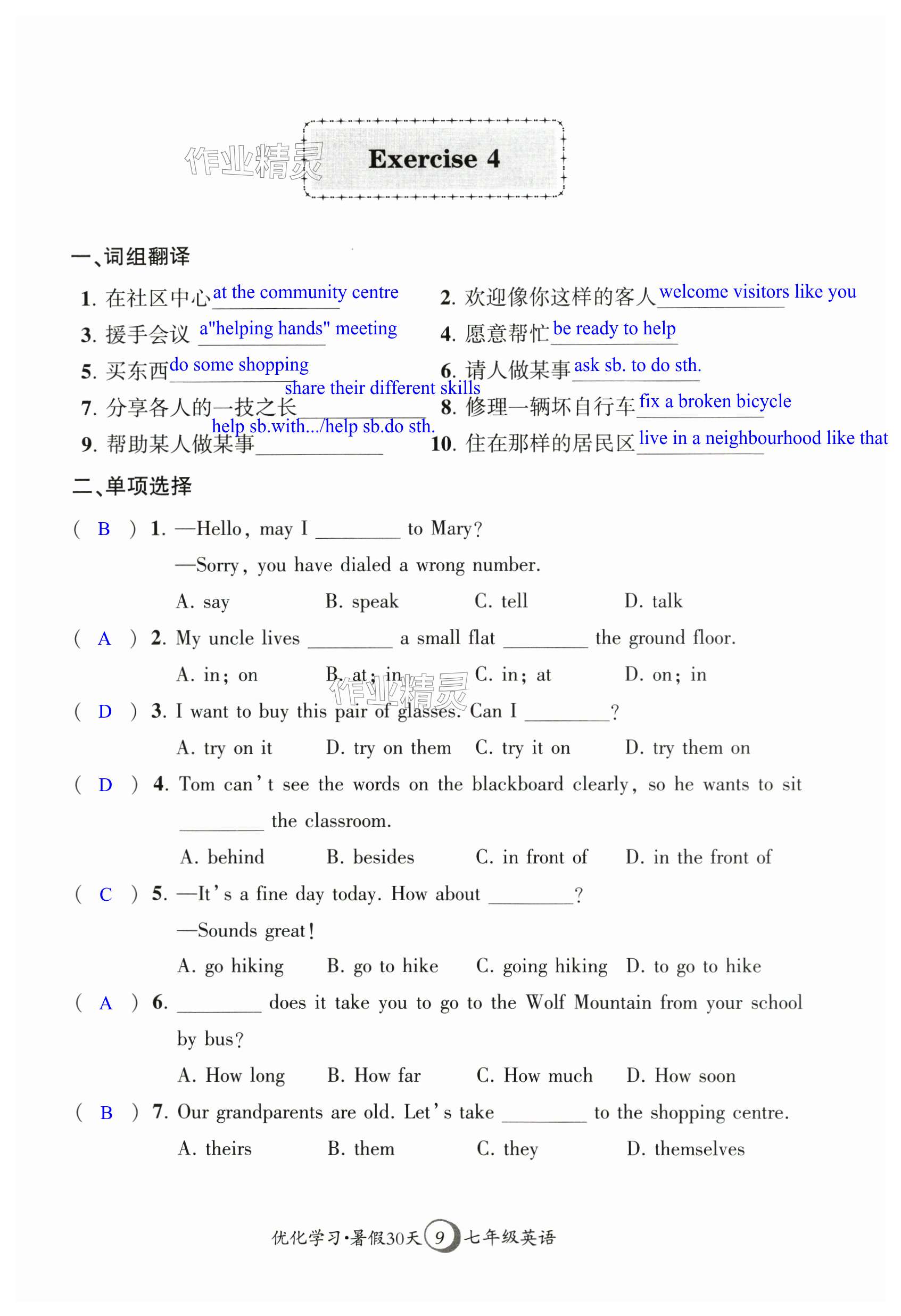 注:目前有些书本章节名称可能整理的还不是很完善,但都是按照顺序排列的,请同学们按照顺序仔细查找。练习册 2024年优化学习暑假30天七年级英语河海大学出版社 答案主要是用来给同学们做完题方便对答案用的,请勿直接抄袭。