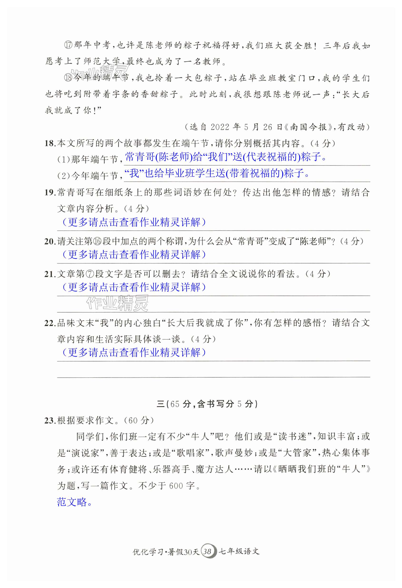注:目前有些书本章节名称可能整理的还不是很完善,但都是按照顺序排列的,请同学们按照顺序仔细查找。练习册 2024年优化学习暑假30天七年级语文河海大学出版社 答案主要是用来给同学们做完题方便对答案用的,请勿直接抄袭。