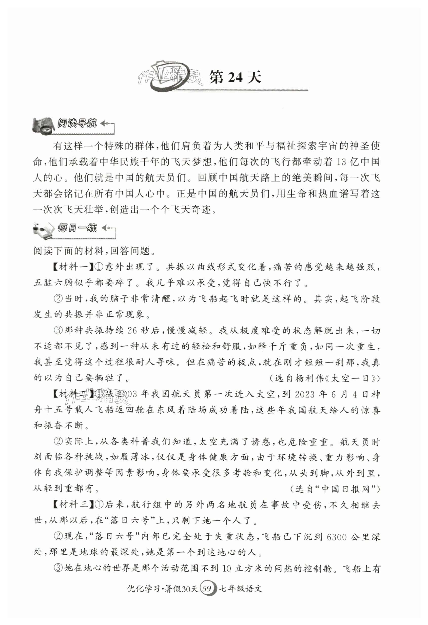 注:目前有些书本章节名称可能整理的还不是很完善,但都是按照顺序排列的,请同学们按照顺序仔细查找。练习册 2024年优化学习暑假30天七年级语文河海大学出版社 答案主要是用来给同学们做完题方便对答案用的,请勿直接抄袭。