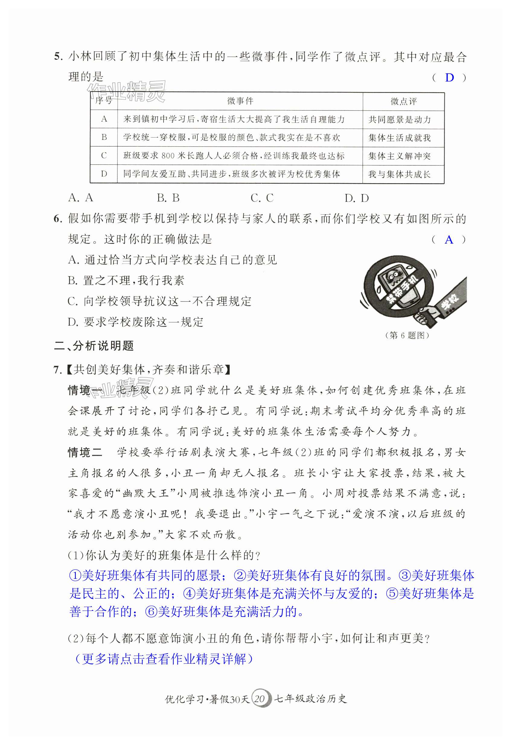 注:目前有些书本章节名称可能整理的还不是很完善,但都是按照顺序排列的,请同学们按照顺序仔细查找。练习册 2024年优化学习暑假30天七年级政治历史河海大学出版社 答案主要是用来给同学们做完题方便对答案用的,请勿直接抄袭。