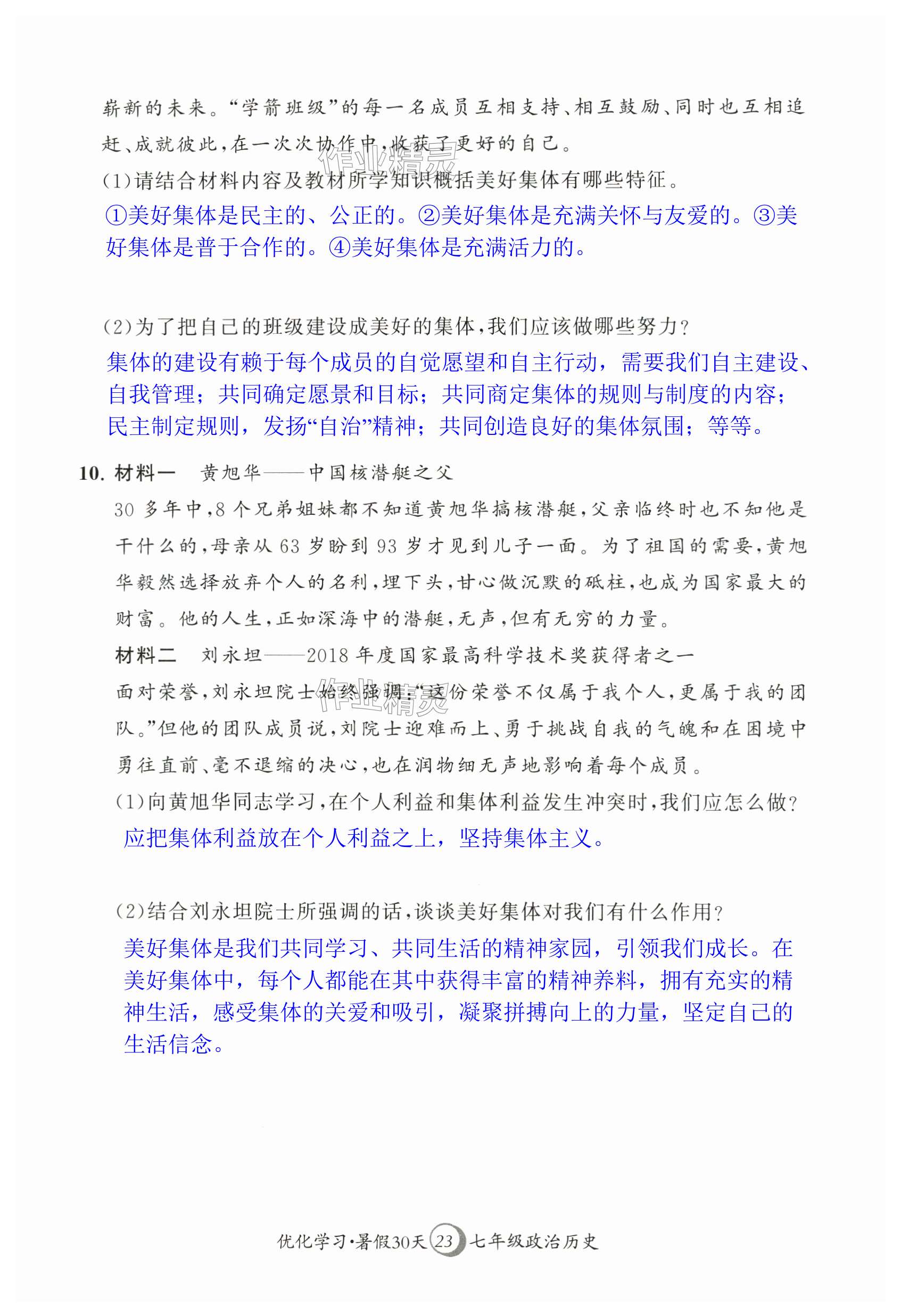 2024年优化学习暑假30天七年级政治历史河海大学出版社