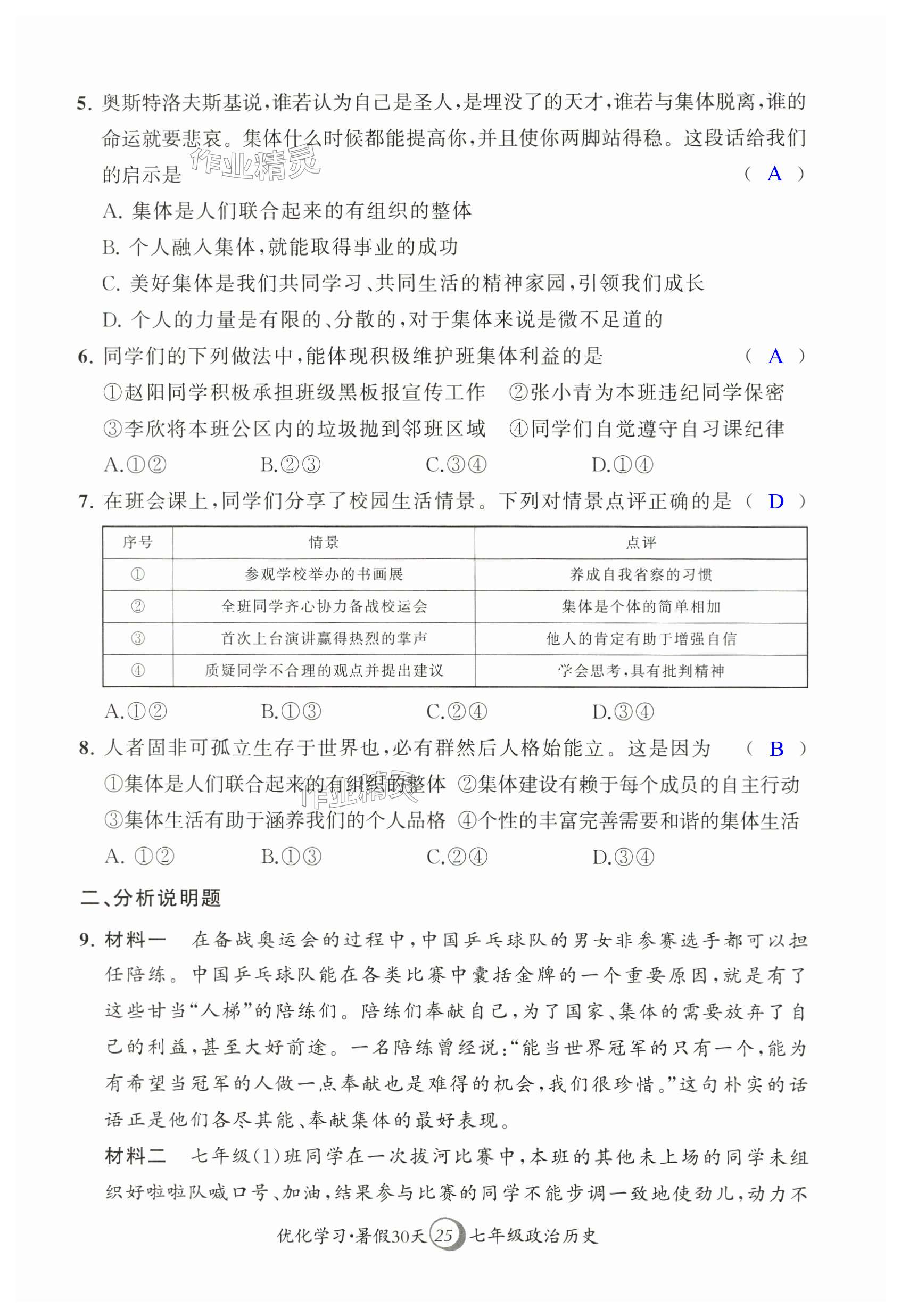 注:目前有些书本章节名称可能整理的还不是很完善,但都是按照顺序排列的,请同学们按照顺序仔细查找。练习册 2024年优化学习暑假30天七年级政治历史河海大学出版社 答案主要是用来给同学们做完题方便对答案用的,请勿直接抄袭。