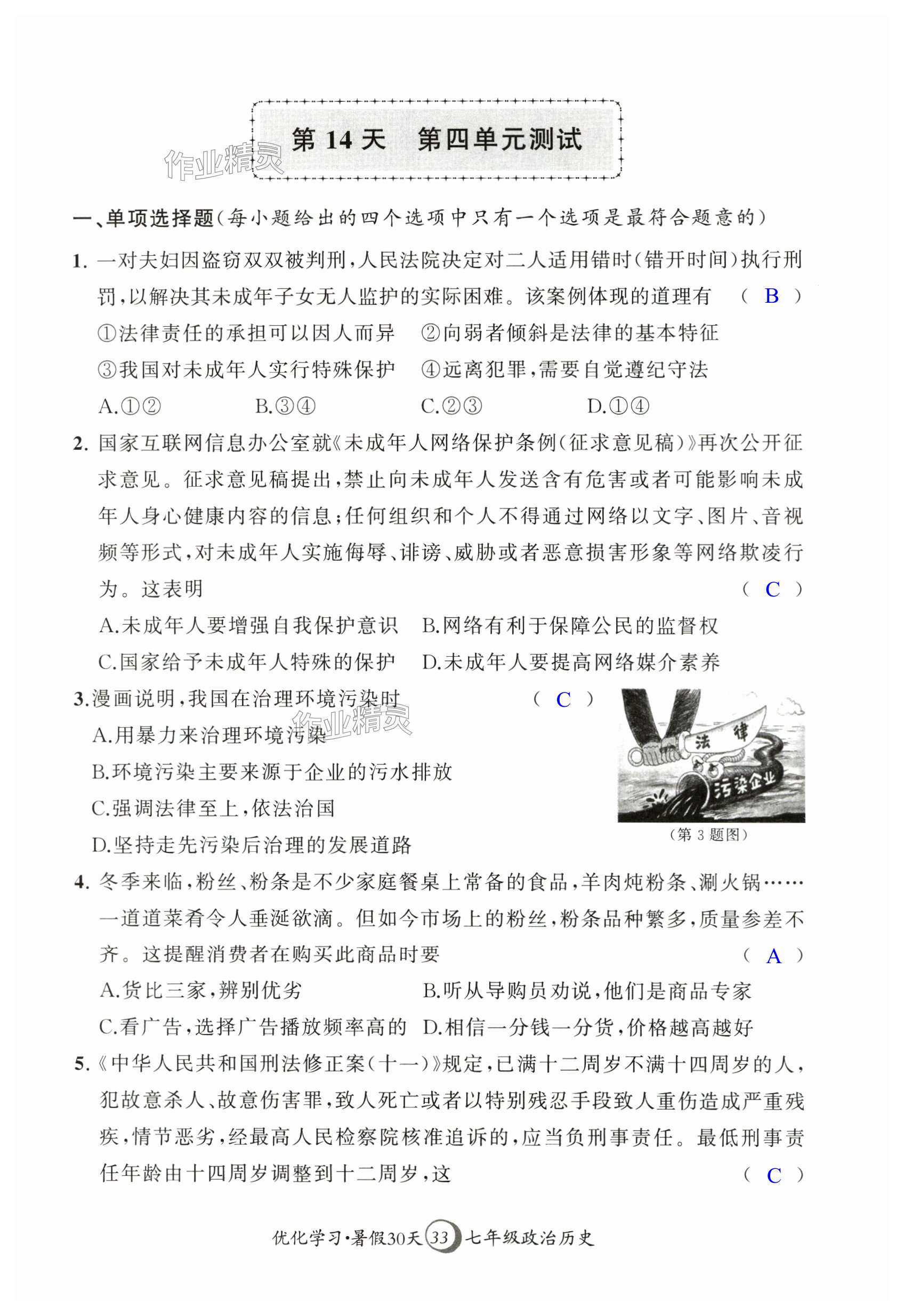 注:目前有些书本章节名称可能整理的还不是很完善,但都是按照顺序排列的,请同学们按照顺序仔细查找。练习册 2024年优化学习暑假30天七年级政治历史河海大学出版社 答案主要是用来给同学们做完题方便对答案用的,请勿直接抄袭。