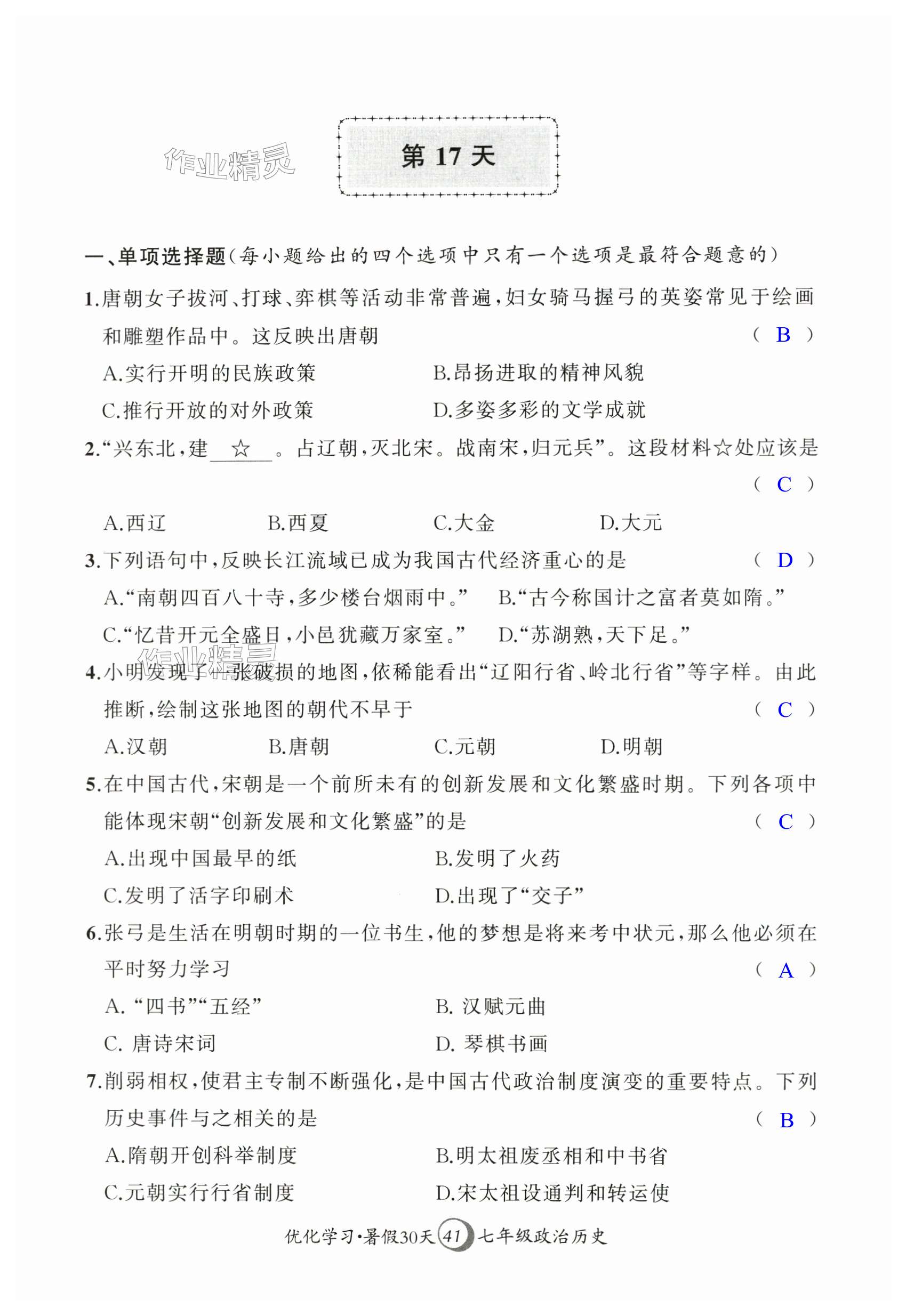 2024年优化学习暑假30天七年级政治历史河海大学出版社
