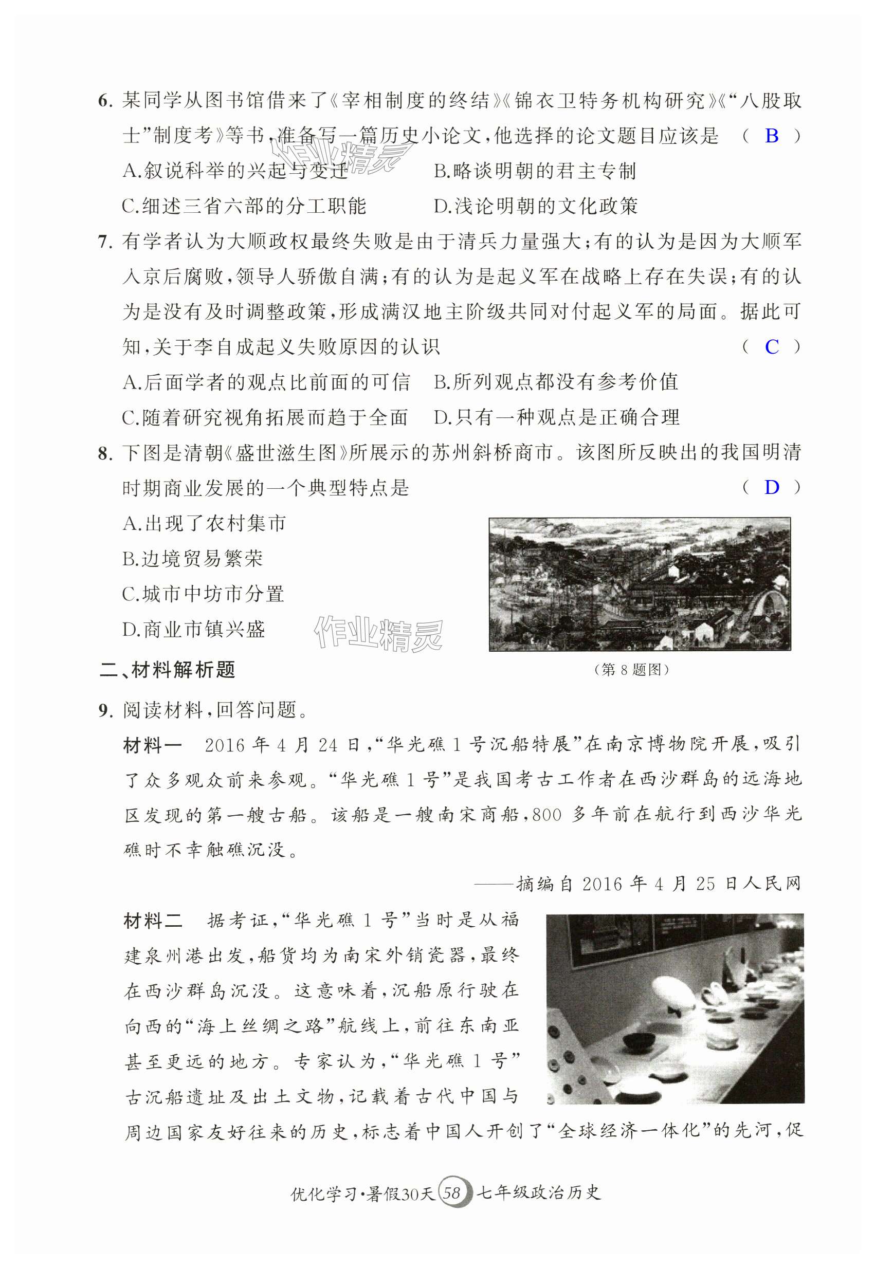 《2024年优化学习暑假30天七年级政治历史河海大学出版社》