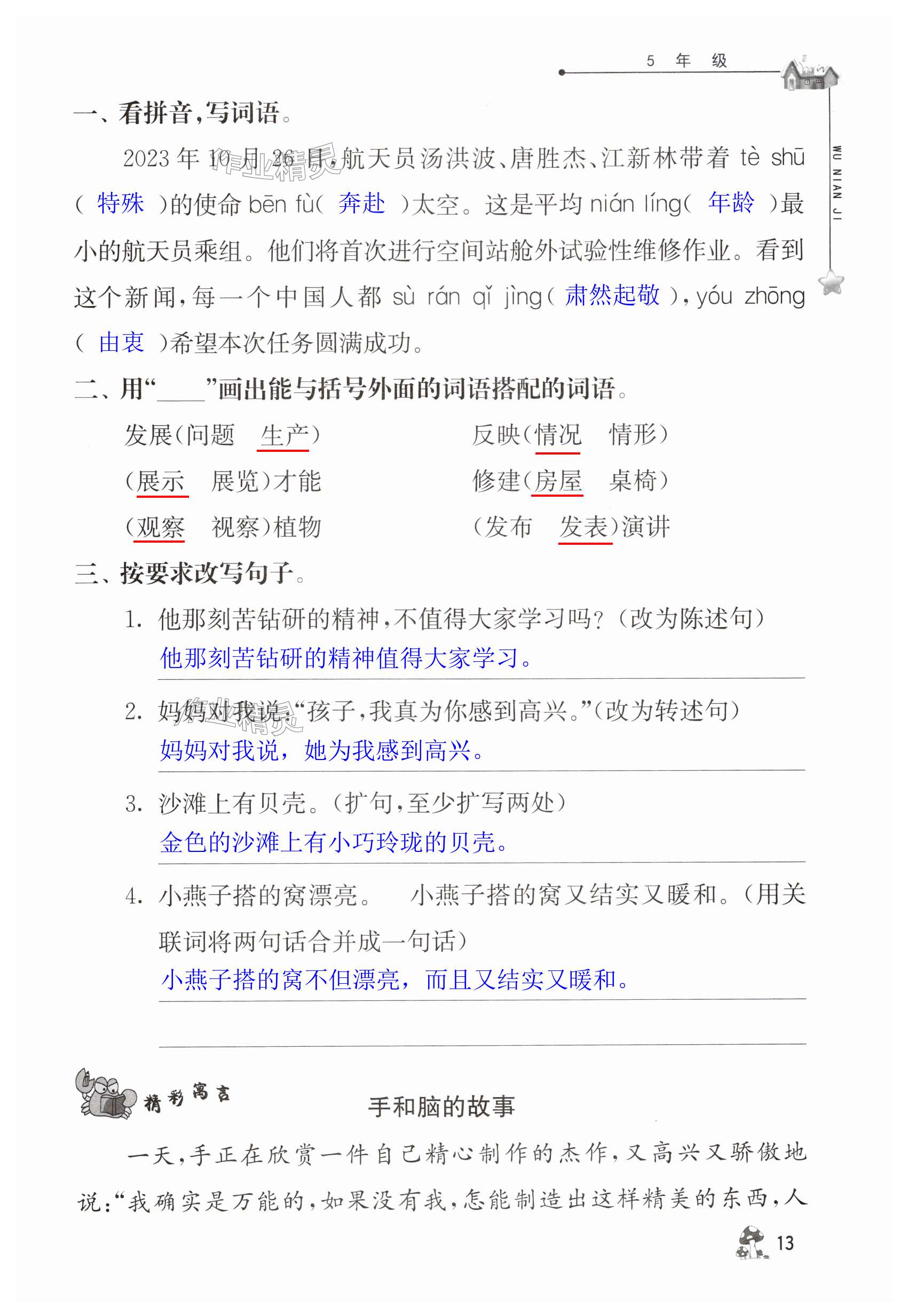注:目前有些书本章节名称可能整理的还不是很完善,但都是按照顺序排列的,请同学们按照顺序仔细查找。练习册 2024年暑假自主学习手册五年级江苏人民出版社 答案主要是用来给同学们做完题方便对答案用的,请勿直接抄袭。