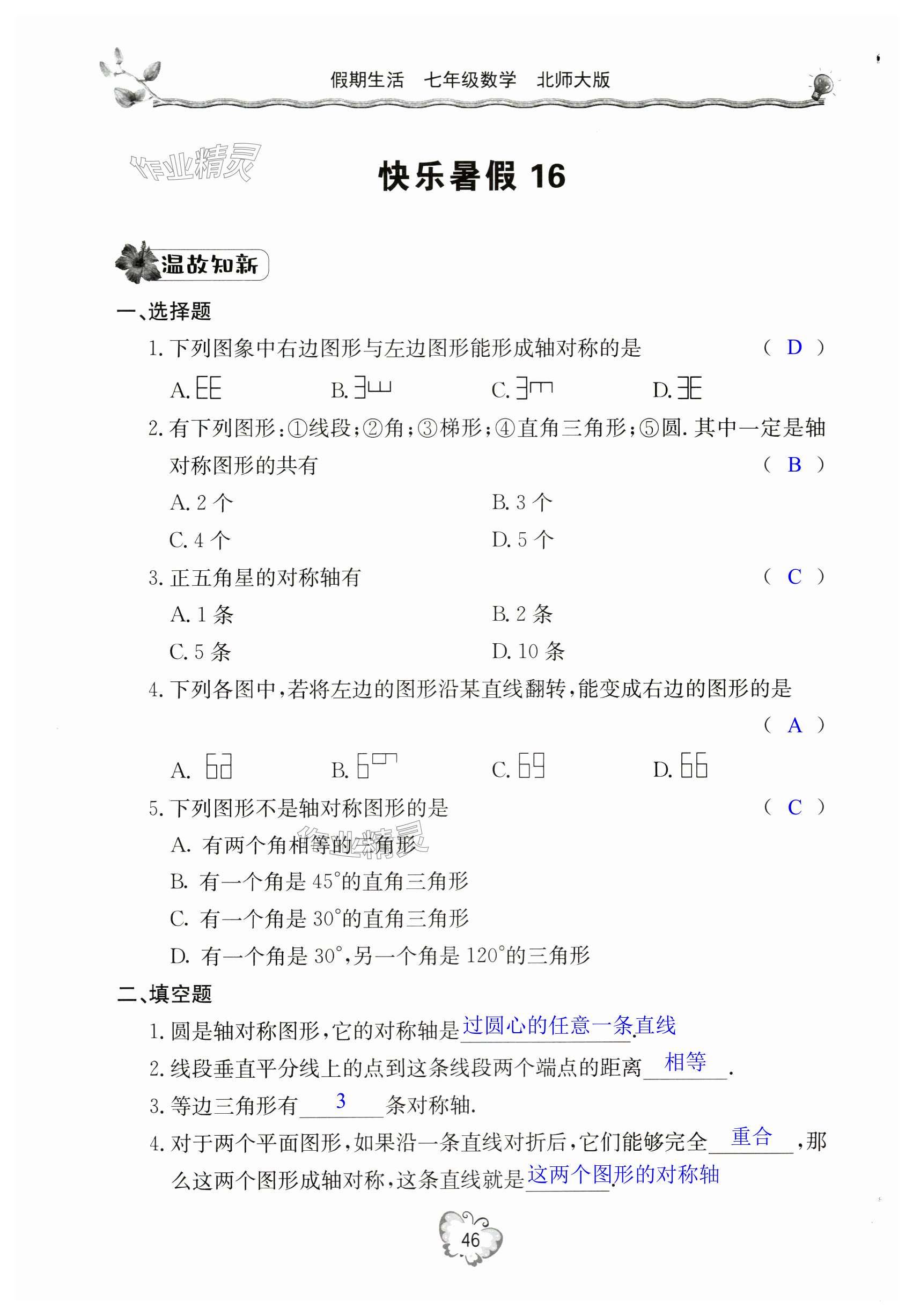 注:目前有些书本章节名称可能整理的还不是很完善,但都是按照顺序排列的,请同学们按照顺序仔细查找。练习册 2024年新课堂假期生活暑假用书七年级数学北师大版 答案主要是用来给同学们做完题方便对答案用的,请勿直接抄袭。