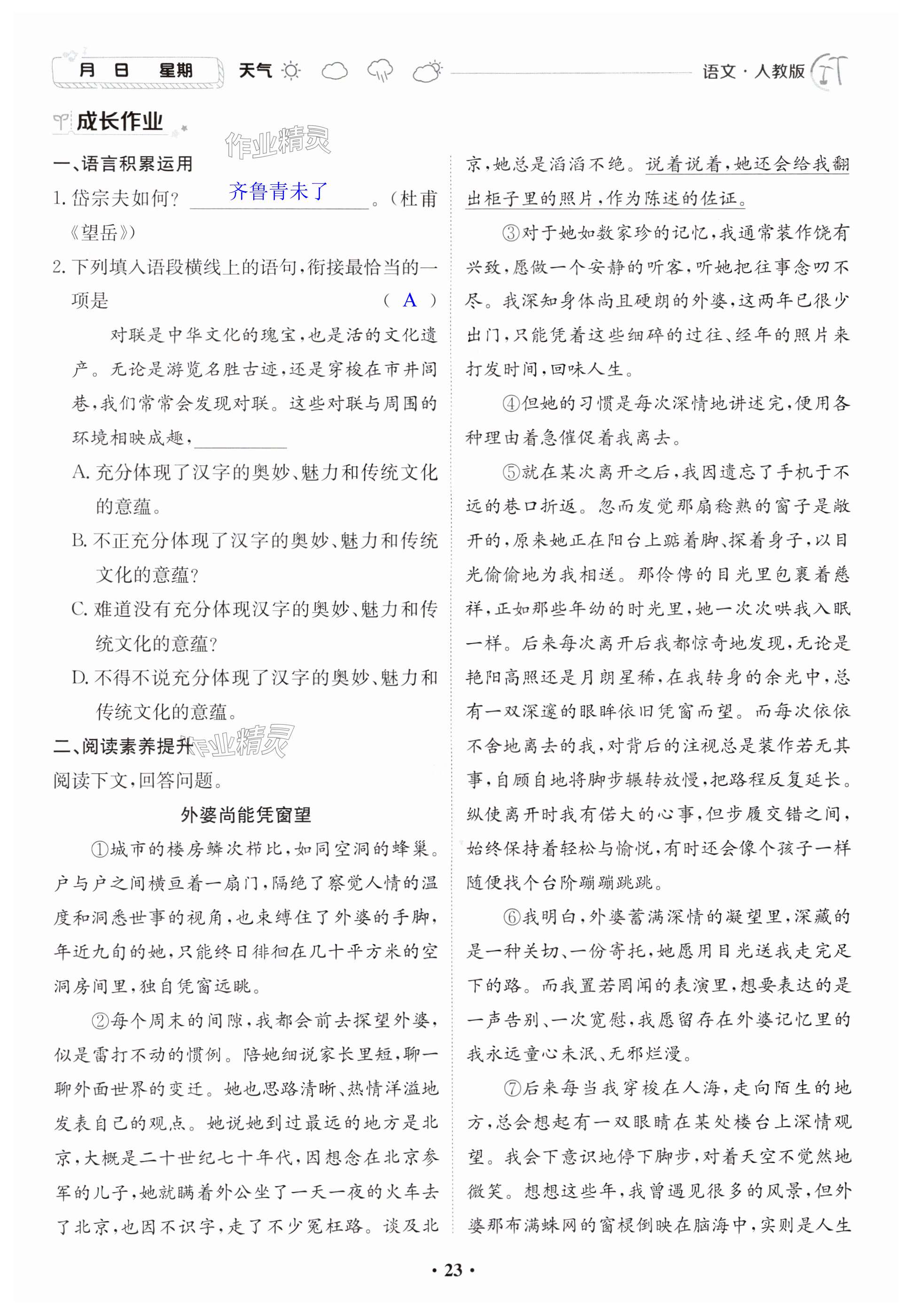 2024年暑假作业江西高校出版社七年级合订本A版I