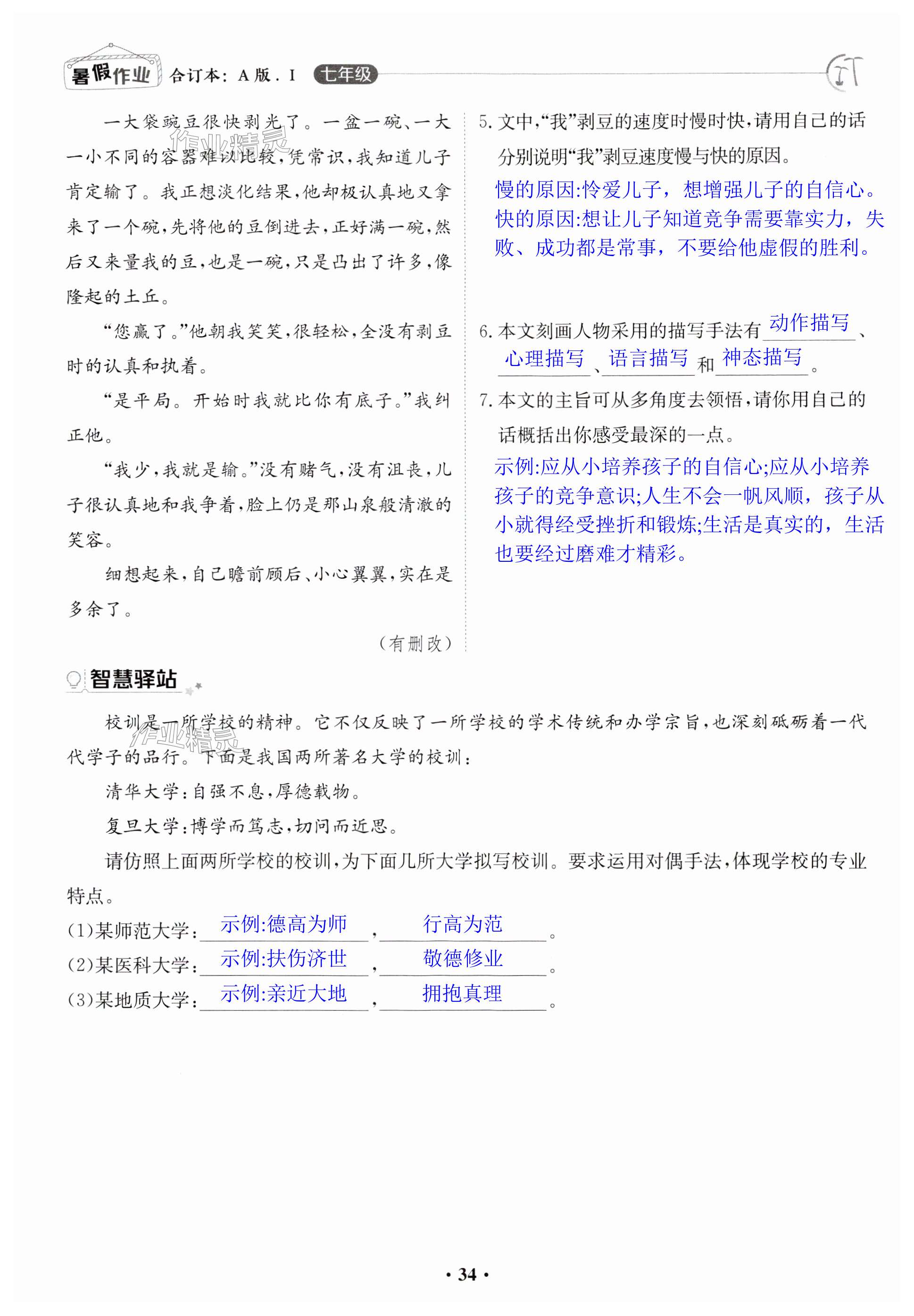 2024年暑假作业江西高校出版社七年级合订本A版I