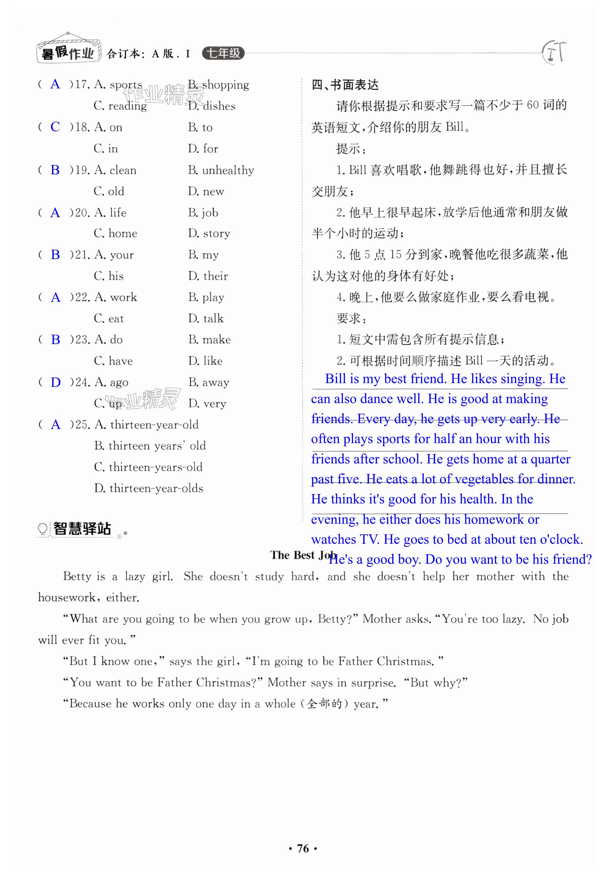 2024年暑假作业江西高校出版社七年级合订本A版I