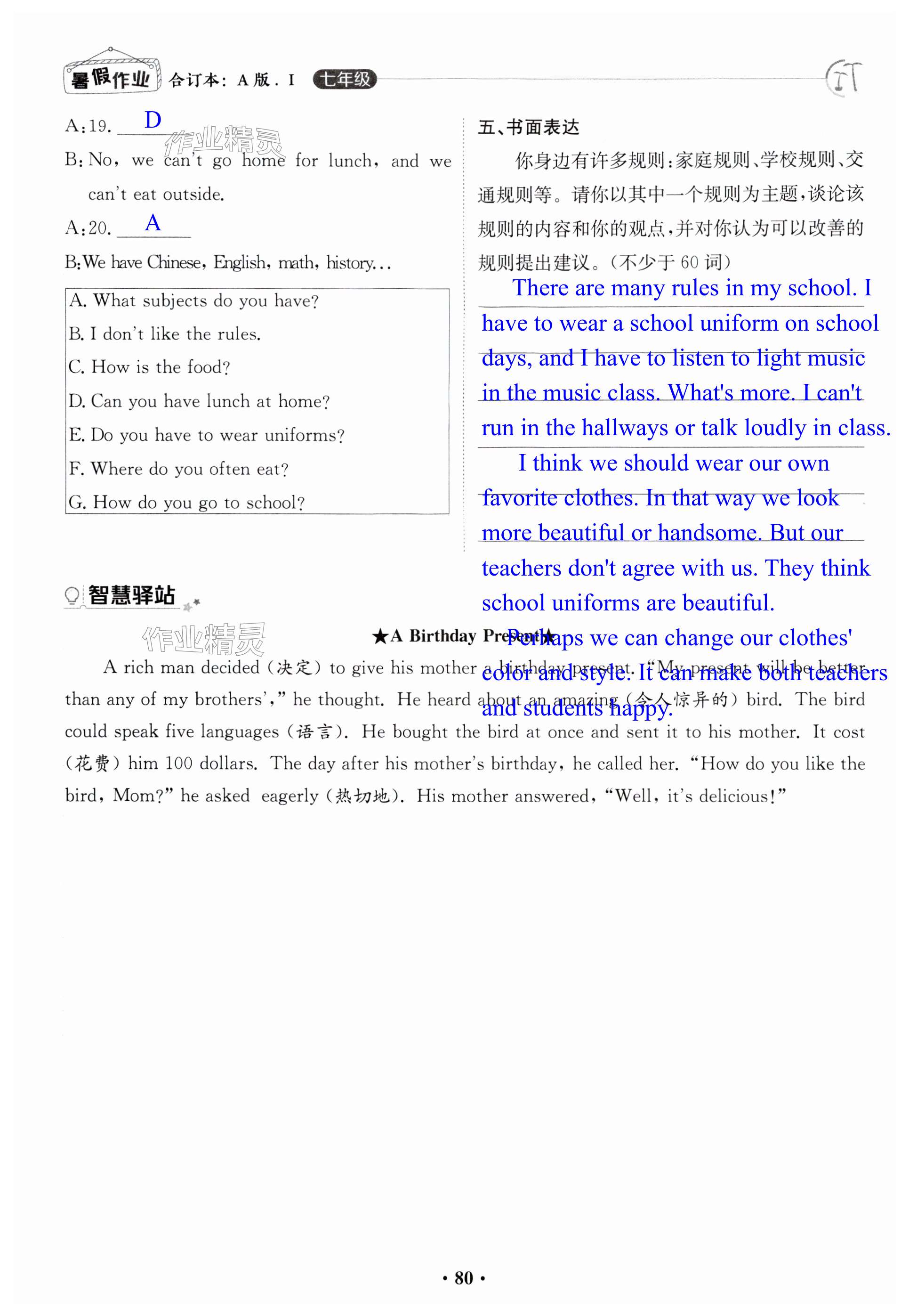 2024年暑假作业江西高校出版社七年级合订本A版I