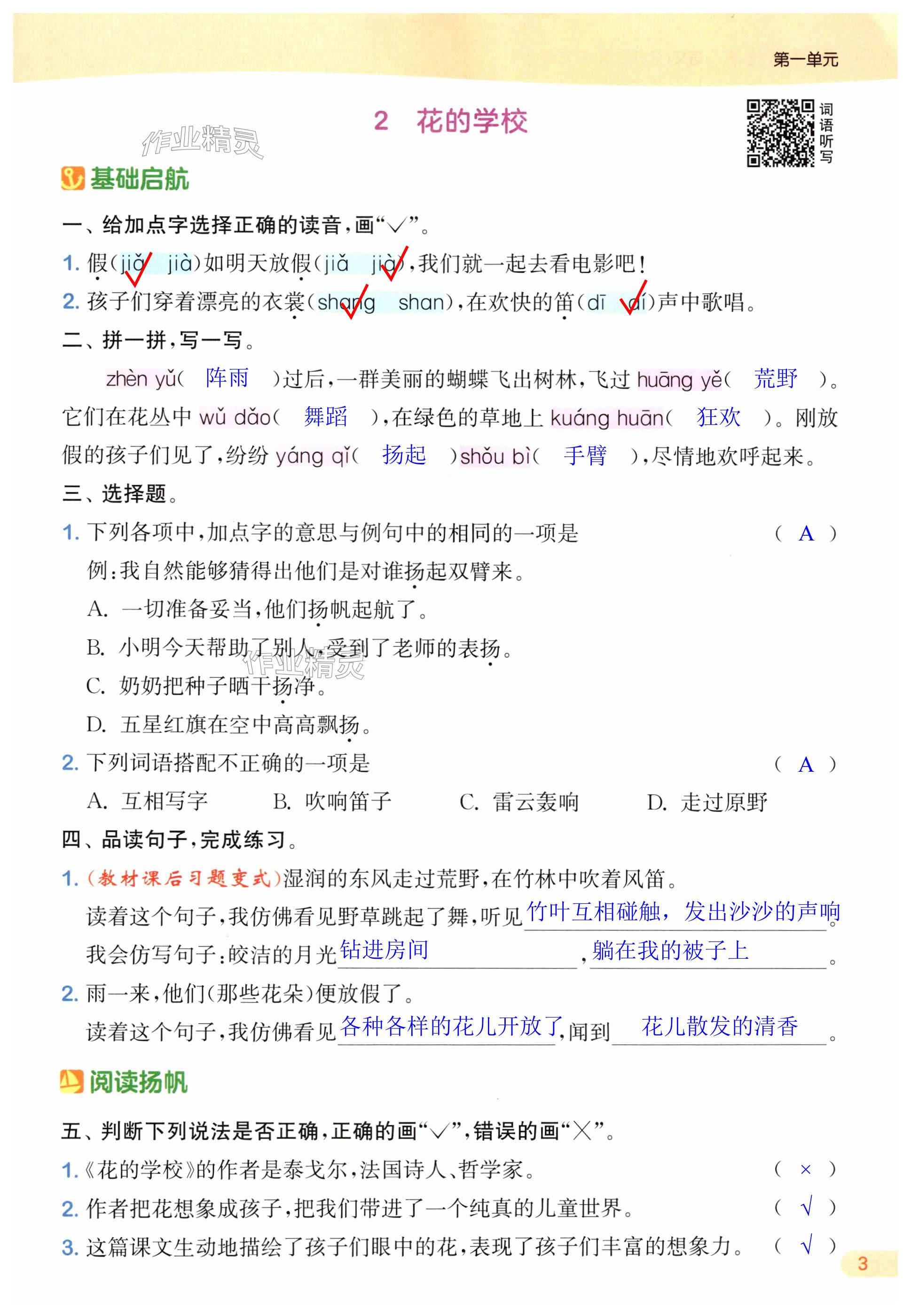 注:目前有些书本章节名称可能整理的还不是很完善,但都是按照顺序排列的,请同学们按照顺序仔细查找。练习册 2024年通城学典课时作业本三年级语文上册江苏专版 答案主要是用来给同学们做完题方便对答案用的,请勿直接抄袭。