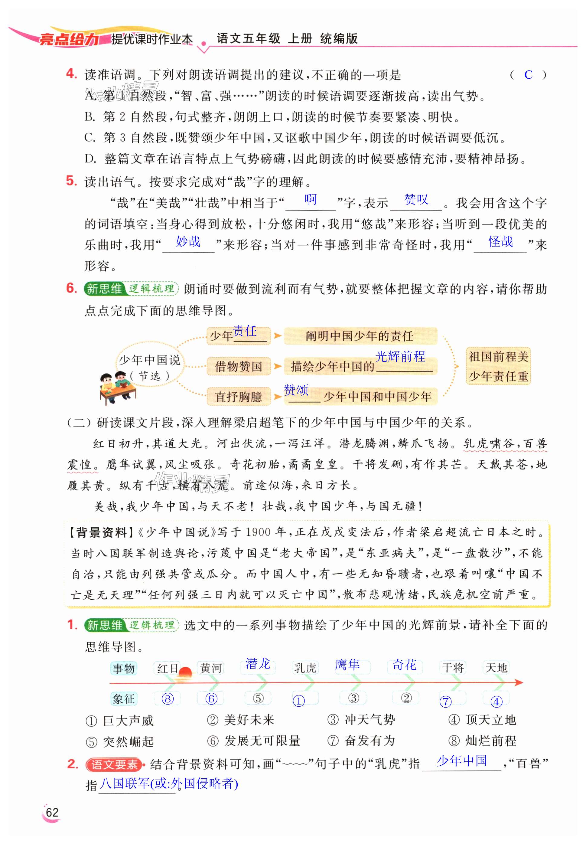 注:目前有些书本章节名称可能整理的还不是很完善,但都是按照顺序排列的,请同学们按照顺序仔细查找。练习册 2024年亮点给力提优课时作业本五年级语文上册统编版 答案主要是用来给同学们做完题方便对答案用的,请勿直接抄袭。