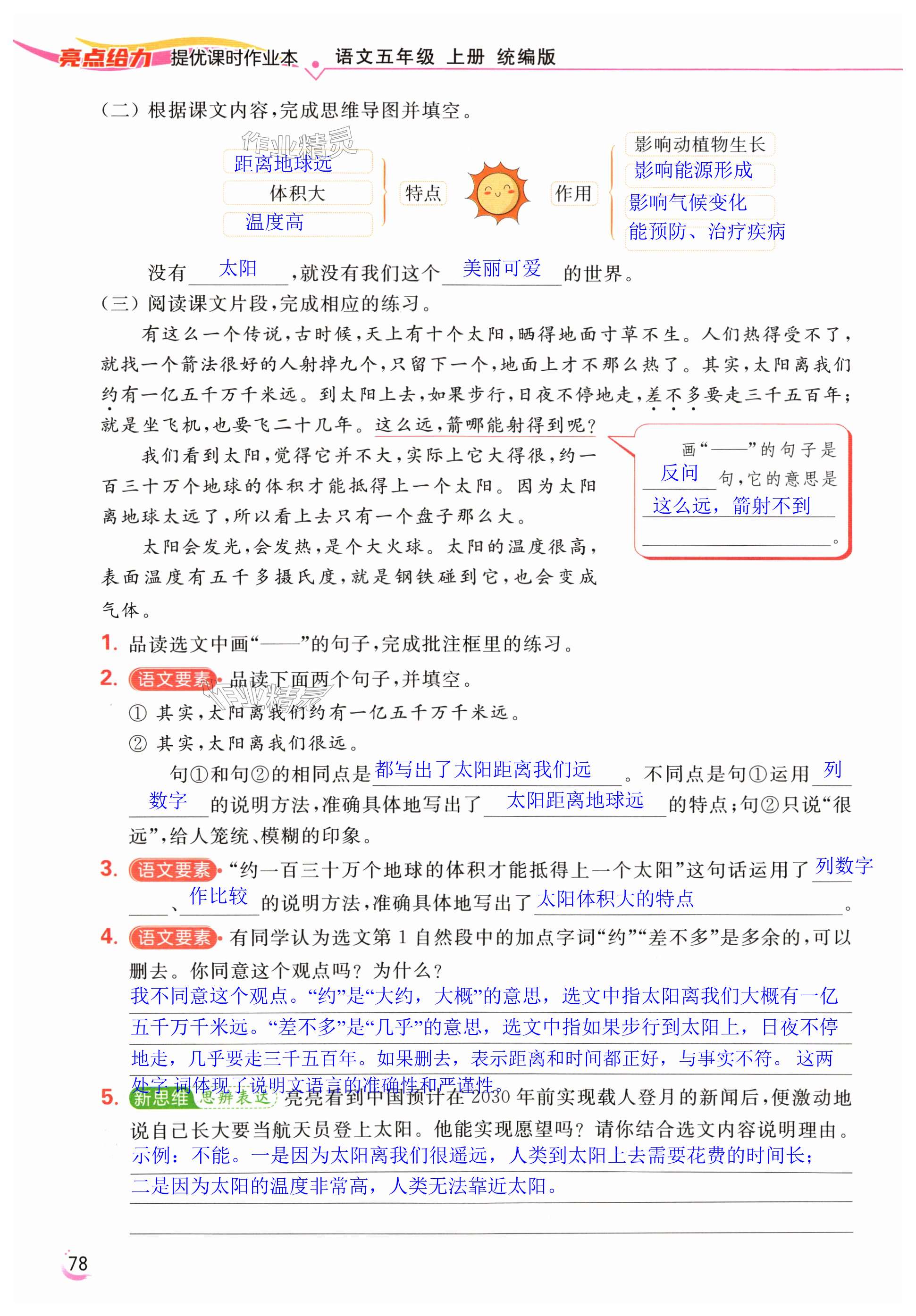 注:目前有些书本章节名称可能整理的还不是很完善,但都是按照顺序排列的,请同学们按照顺序仔细查找。练习册 2024年亮点给力提优课时作业本五年级语文上册统编版 答案主要是用来给同学们做完题方便对答案用的,请勿直接抄袭。