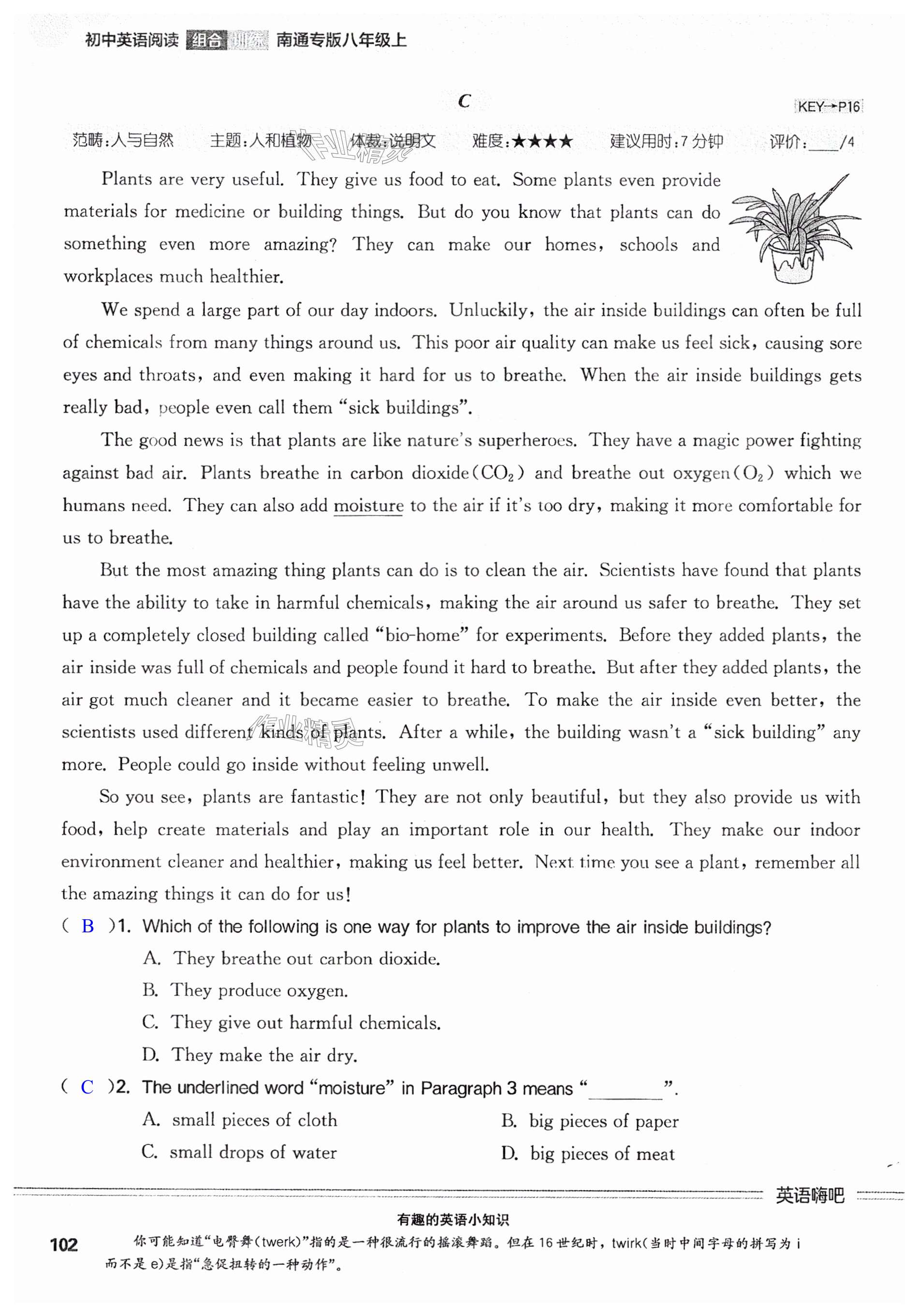 注:目前有些书本章节名称可能整理的还不是很完善,但都是按照顺序排列的,请同学们按照顺序仔细查找。练习册 2024年通城学典初中英语阅读组合训练八年级上册南通专版 答案主要是用来给同学们做完题方便对答案用的,请勿直接抄袭。