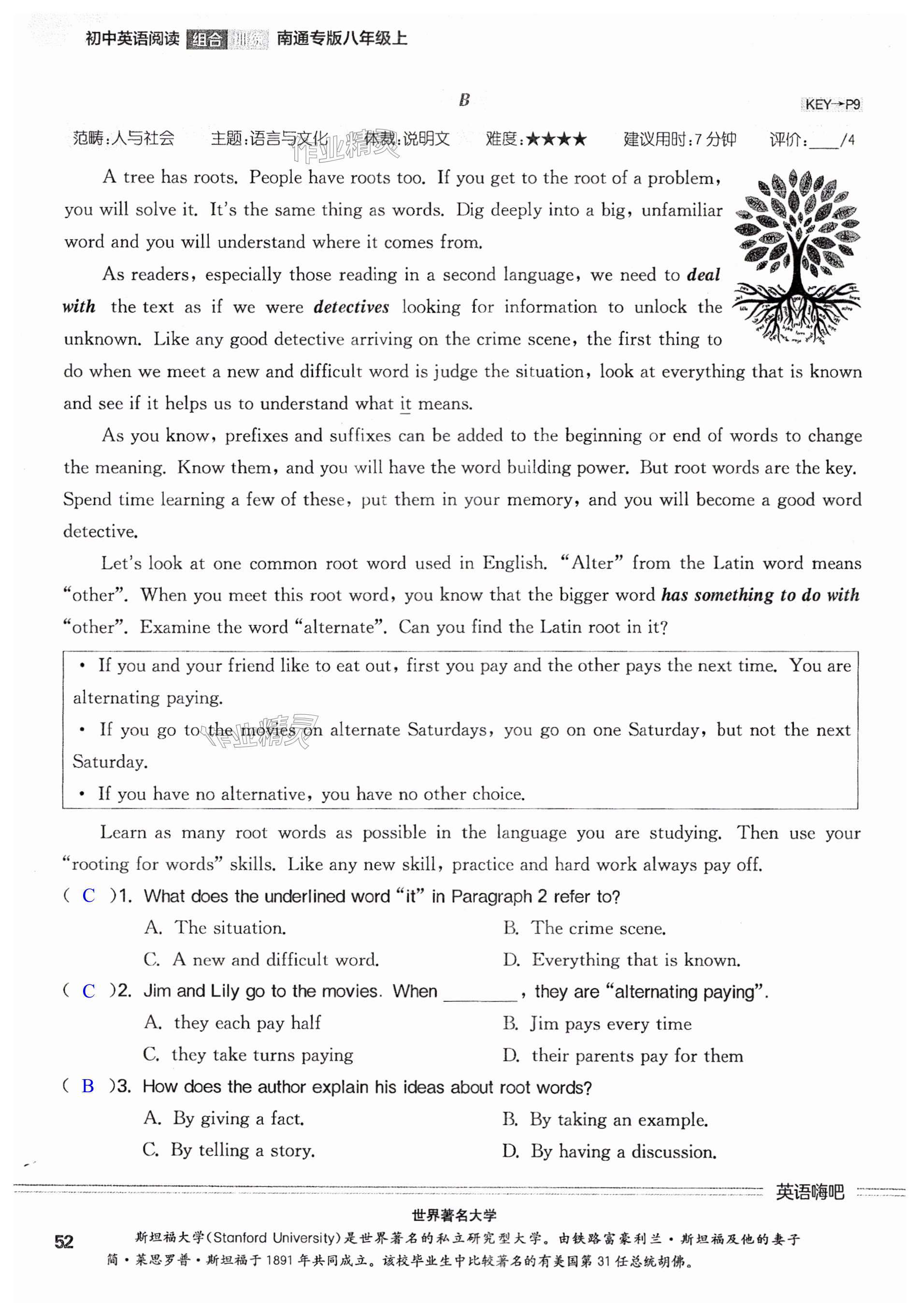 注:目前有些书本章节名称可能整理的还不是很完善,但都是按照顺序排列的,请同学们按照顺序仔细查找。练习册 2024年通城学典初中英语阅读组合训练八年级上册南通专版 答案主要是用来给同学们做完题方便对答案用的,请勿直接抄袭。