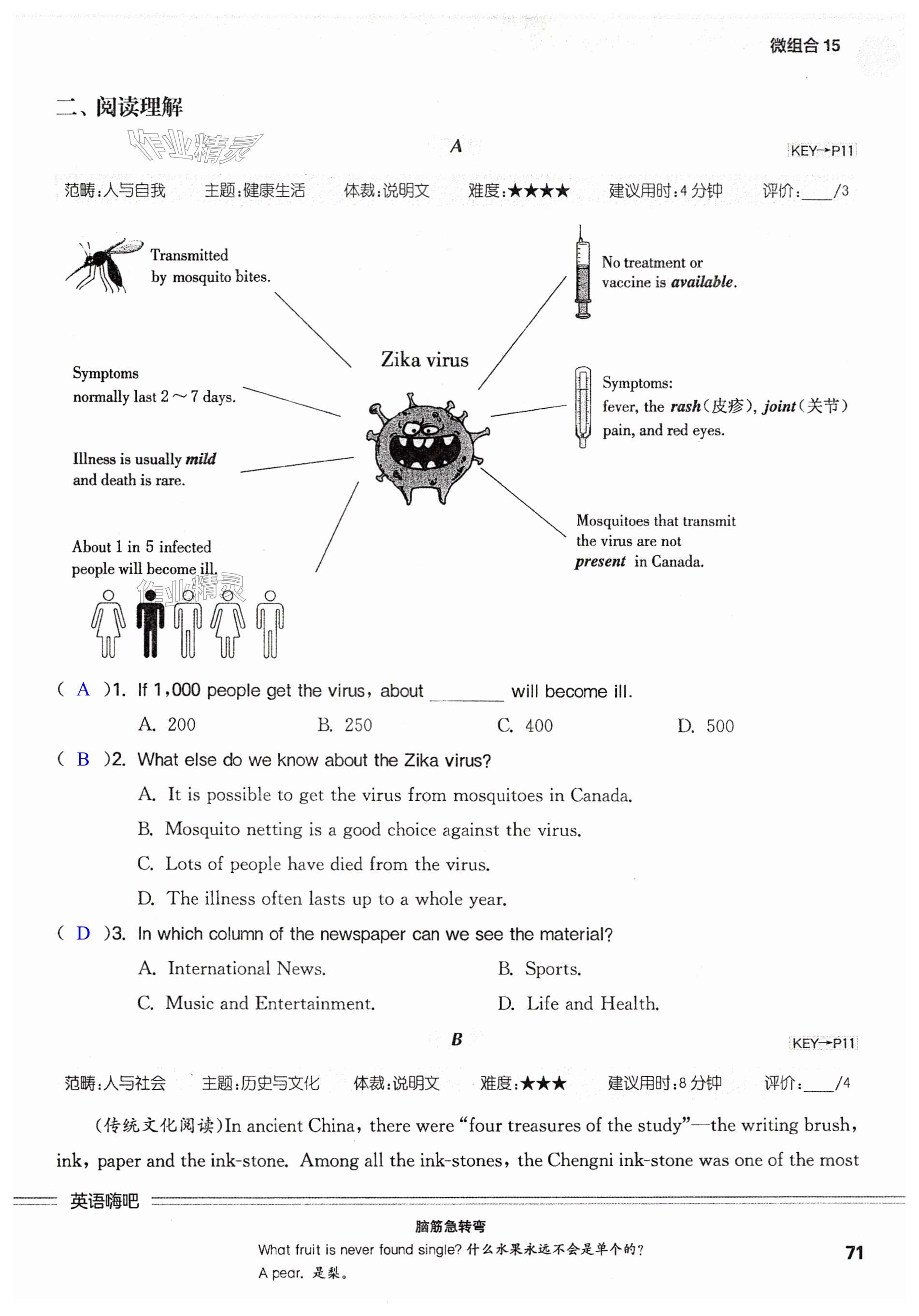 注:目前有些书本章节名称可能整理的还不是很完善,但都是按照顺序排列的,请同学们按照顺序仔细查找。练习册 2024年通城学典初中英语阅读组合训练八年级上册南通专版 答案主要是用来给同学们做完题方便对答案用的,请勿直接抄袭。