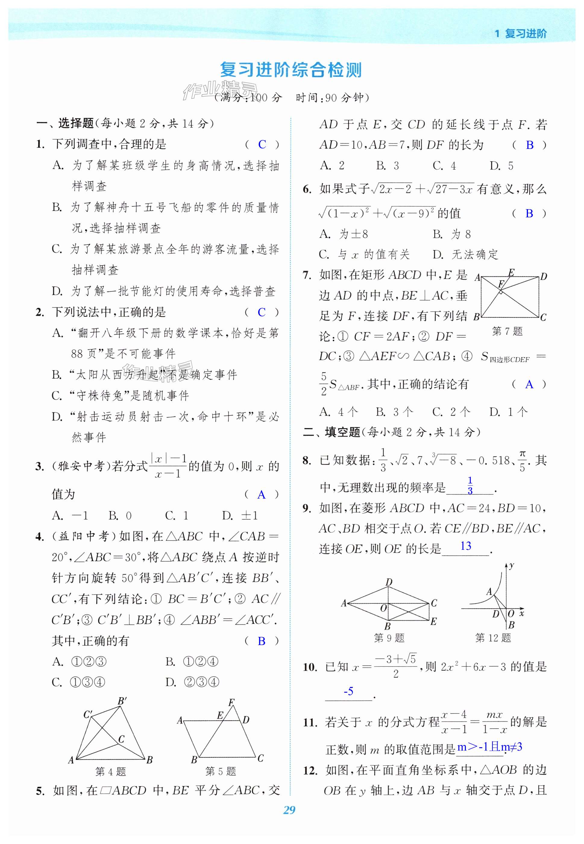 注:目前有些书本章节名称可能整理的还不是很完善,但都是按照顺序排列的,请同学们按照顺序仔细查找。练习册 2024年暑期升级训练八年级数学苏科版B延边大学出版社 答案主要是用来给同学们做完题方便对答案用的,请勿直接抄袭。