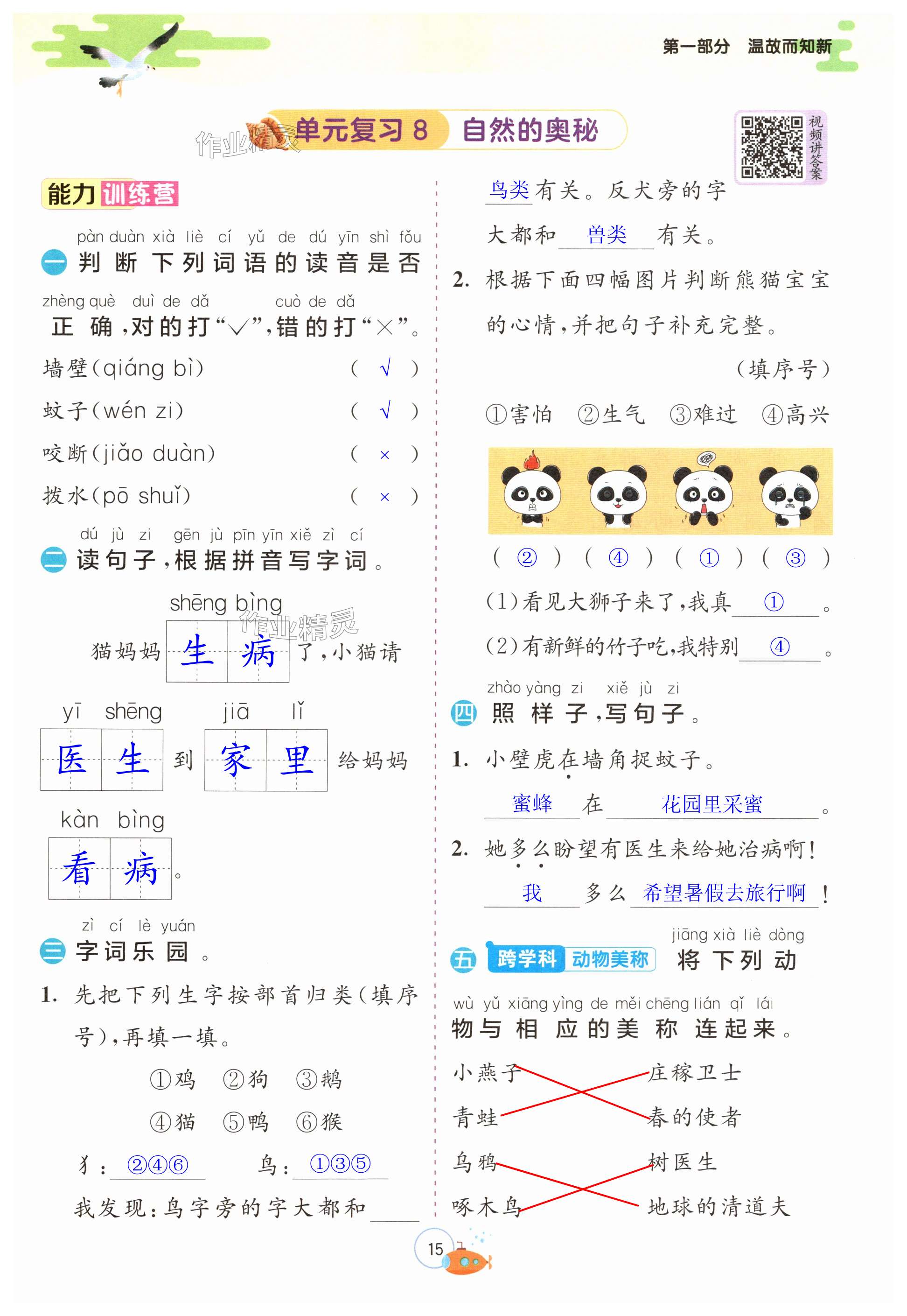注:目前有些书本章节名称可能整理的还不是很完善,但都是按照顺序排列的,请同学们按照顺序仔细查找。练习册 2024年实验班提优训练暑假衔接版一升二年级语文 答案主要是用来给同学们做完题方便对答案用的,请勿直接抄袭。
