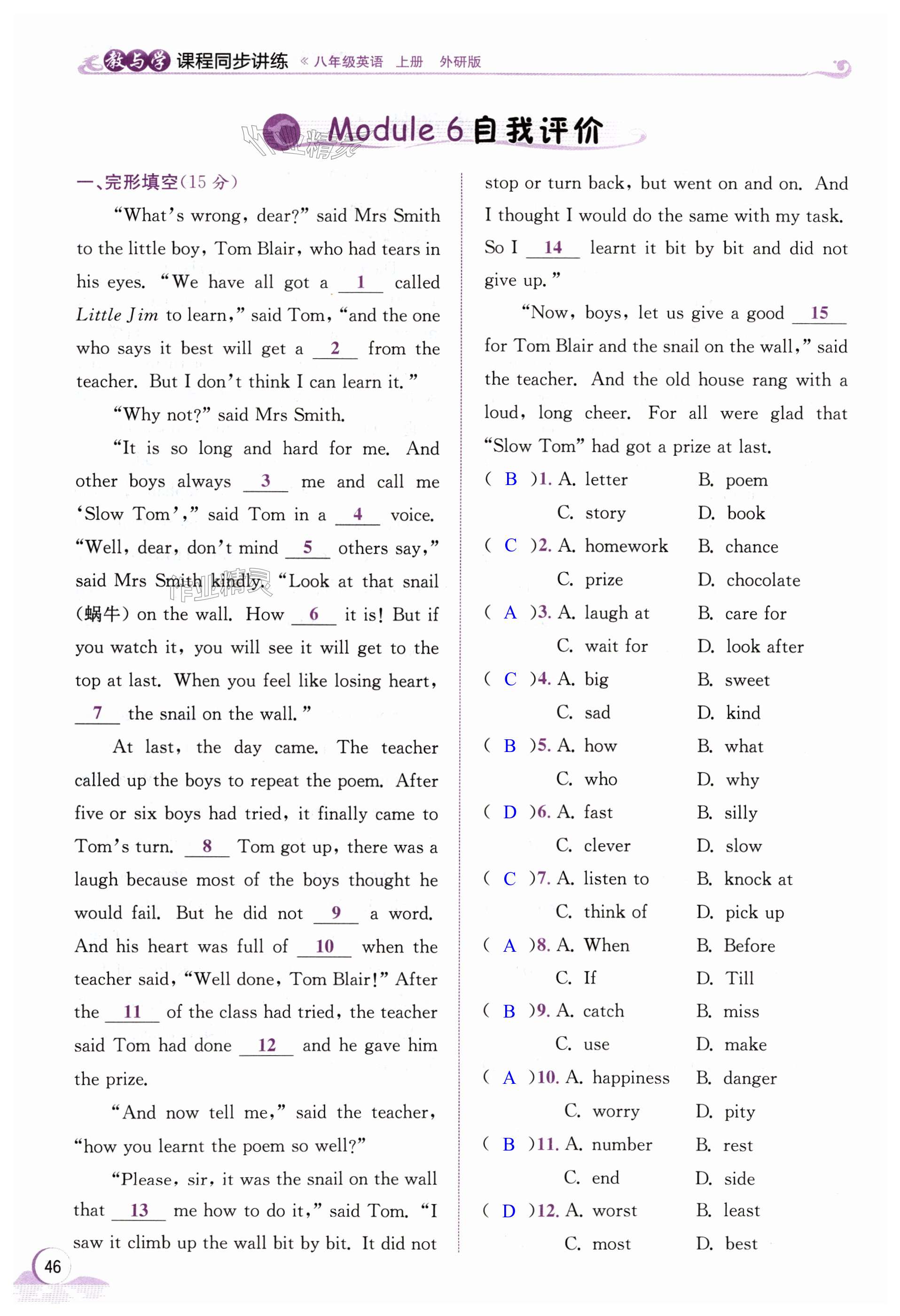 注:目前有些书本章节名称可能整理的还不是很完善,但都是按照顺序排列的,请同学们按照顺序仔细查找。练习册 2024年教与学课程同步讲练八年级英语上册外研版温州专版 答案主要是用来给同学们做完题方便对答案用的,请勿直接抄袭。