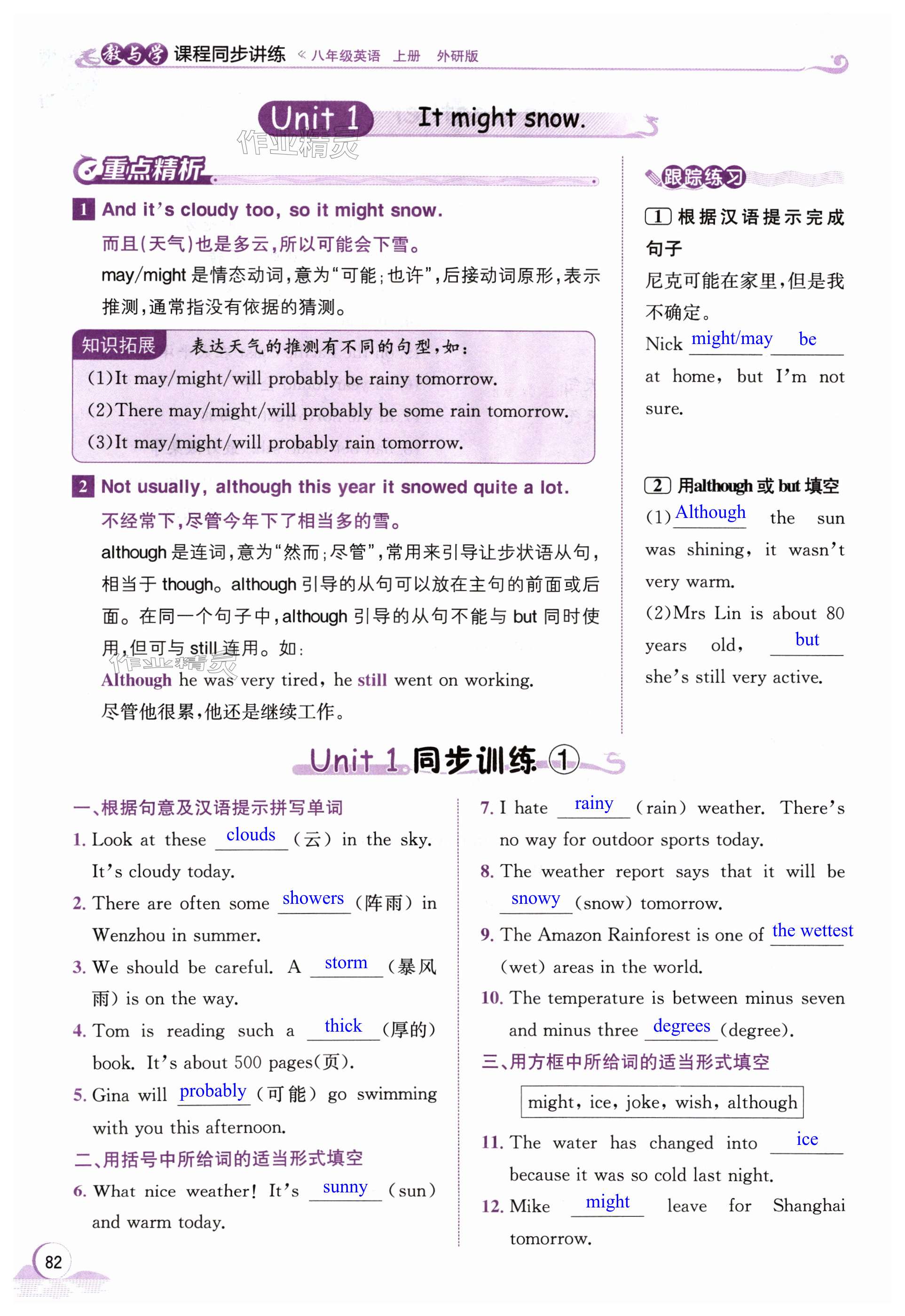 注:目前有些书本章节名称可能整理的还不是很完善,但都是按照顺序排列的,请同学们按照顺序仔细查找。练习册 2024年教与学课程同步讲练八年级英语上册外研版温州专版 答案主要是用来给同学们做完题方便对答案用的,请勿直接抄袭。