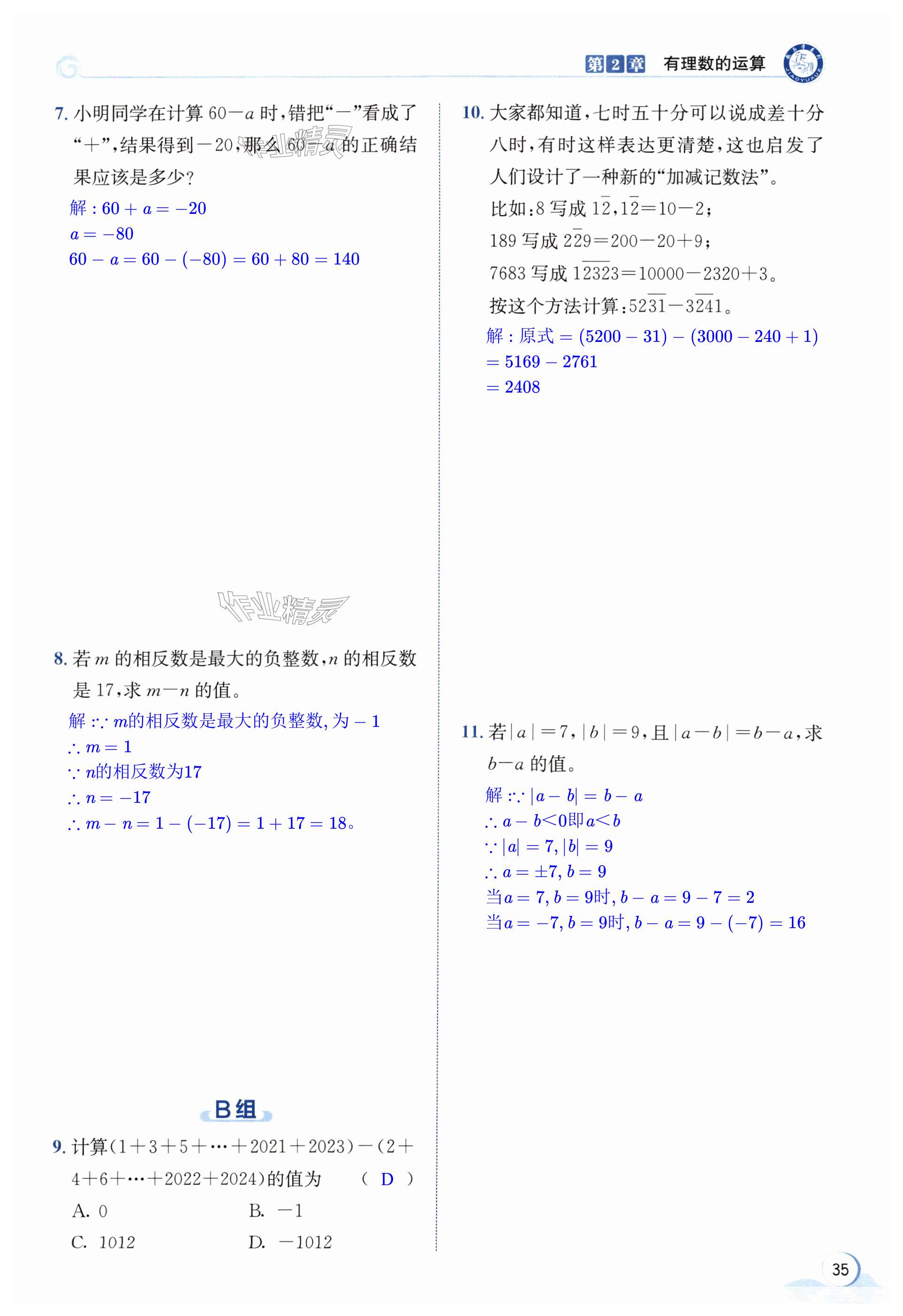 注:目前有些书本章节名称可能整理的还不是很完善,但都是按照顺序排列的,请同学们按照顺序仔细查找。练习册 2024年教与学课程同步讲练七年级数学上册浙教版 答案主要是用来给同学们做完题方便对答案用的,请勿直接抄袭。