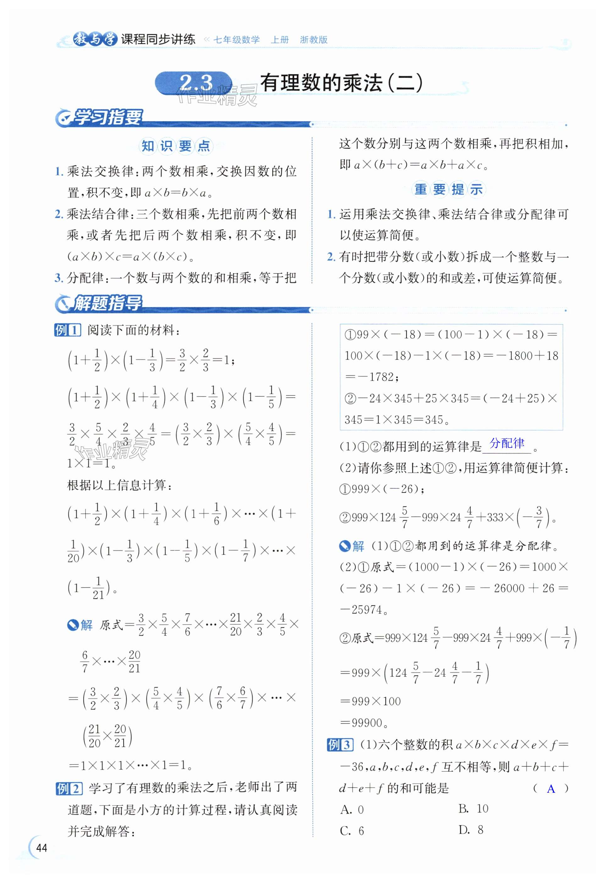 注:目前有些书本章节名称可能整理的还不是很完善,但都是按照顺序排列的,请同学们按照顺序仔细查找。练习册 2024年教与学课程同步讲练七年级数学上册浙教版 答案主要是用来给同学们做完题方便对答案用的,请勿直接抄袭。