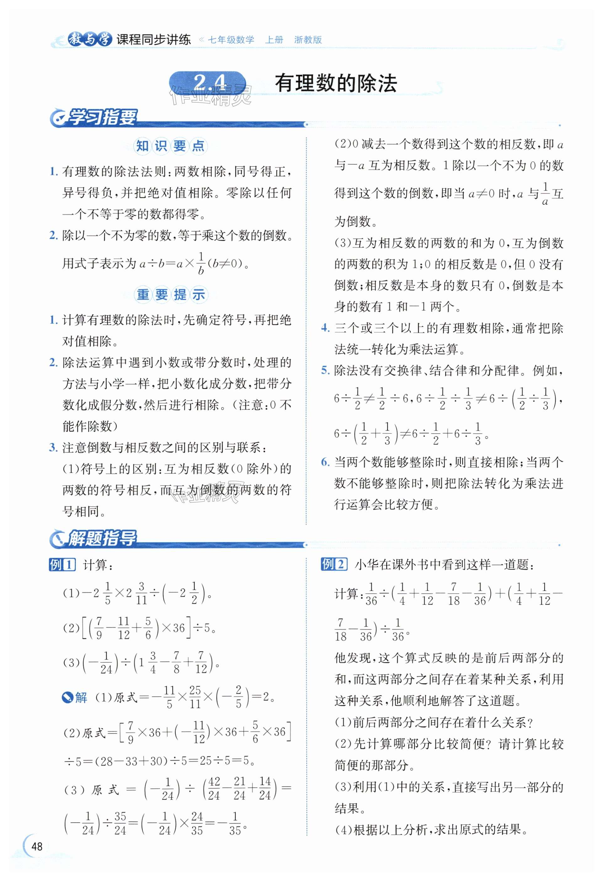 注:目前有些书本章节名称可能整理的还不是很完善,但都是按照顺序排列的,请同学们按照顺序仔细查找。练习册 2024年教与学课程同步讲练七年级数学上册浙教版 答案主要是用来给同学们做完题方便对答案用的,请勿直接抄袭。