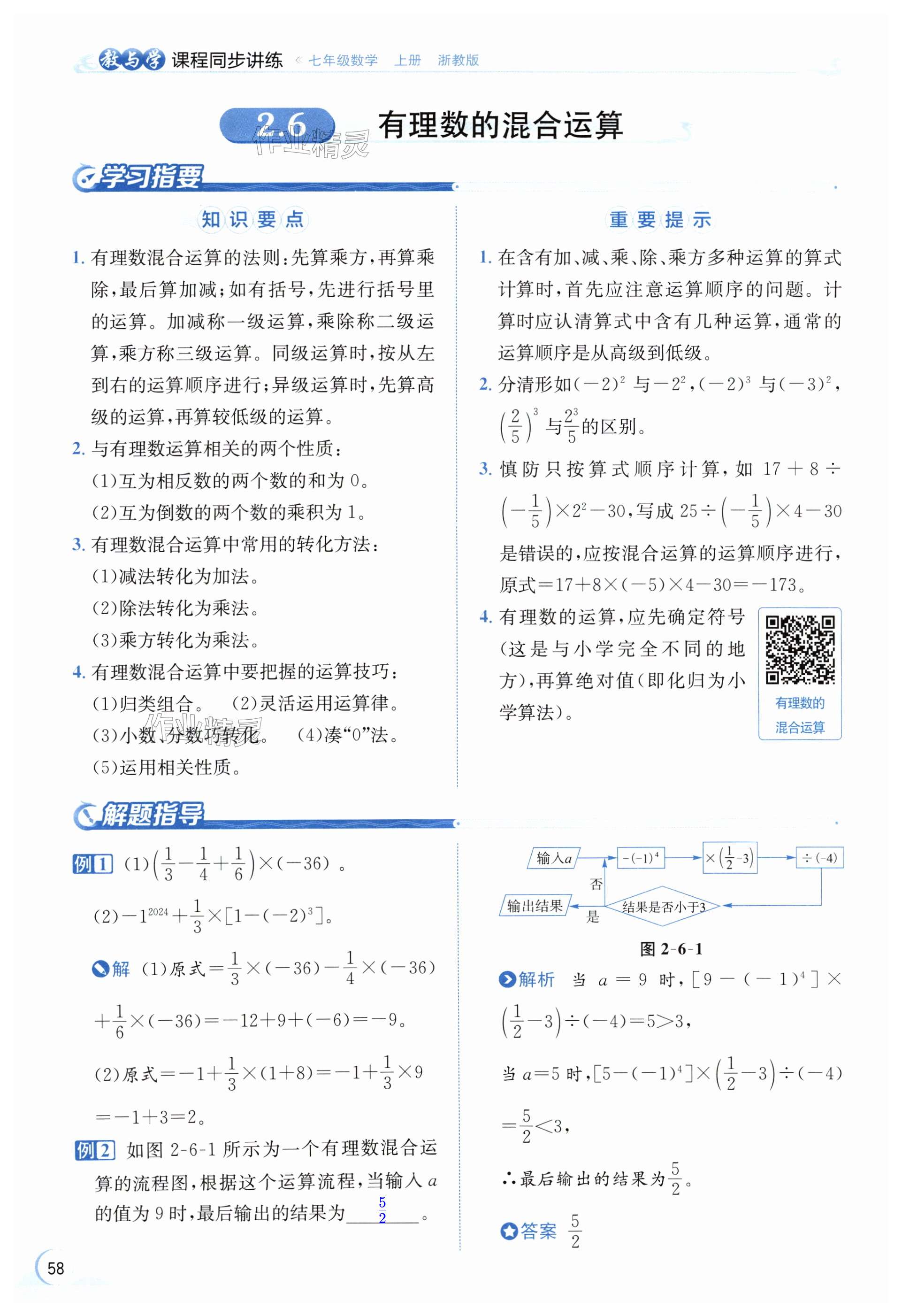 注:目前有些书本章节名称可能整理的还不是很完善,但都是按照顺序排列的,请同学们按照顺序仔细查找。练习册 2024年教与学课程同步讲练七年级数学上册浙教版 答案主要是用来给同学们做完题方便对答案用的,请勿直接抄袭。