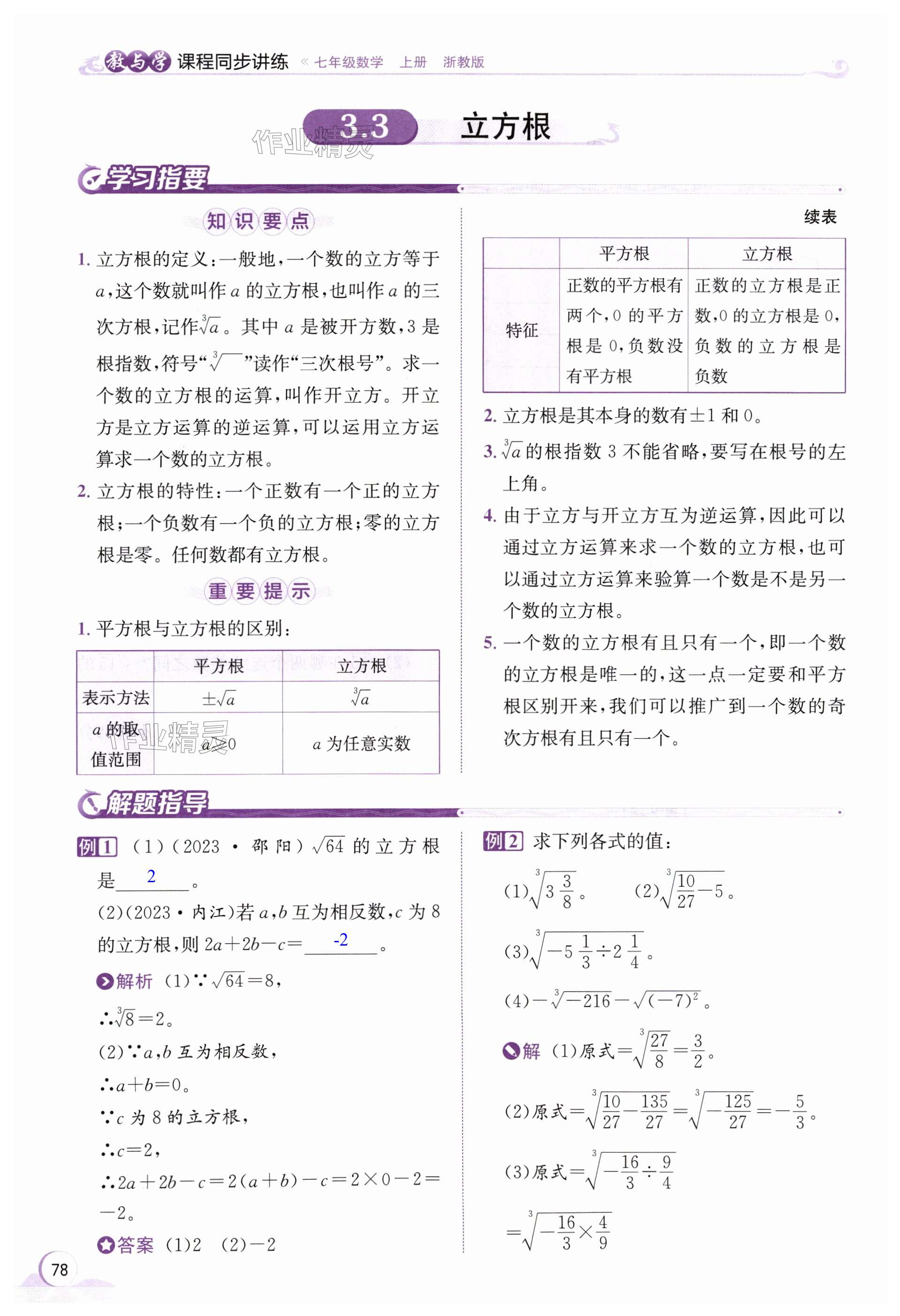 2024年教与学课程同步讲练七年级数学上册浙教版