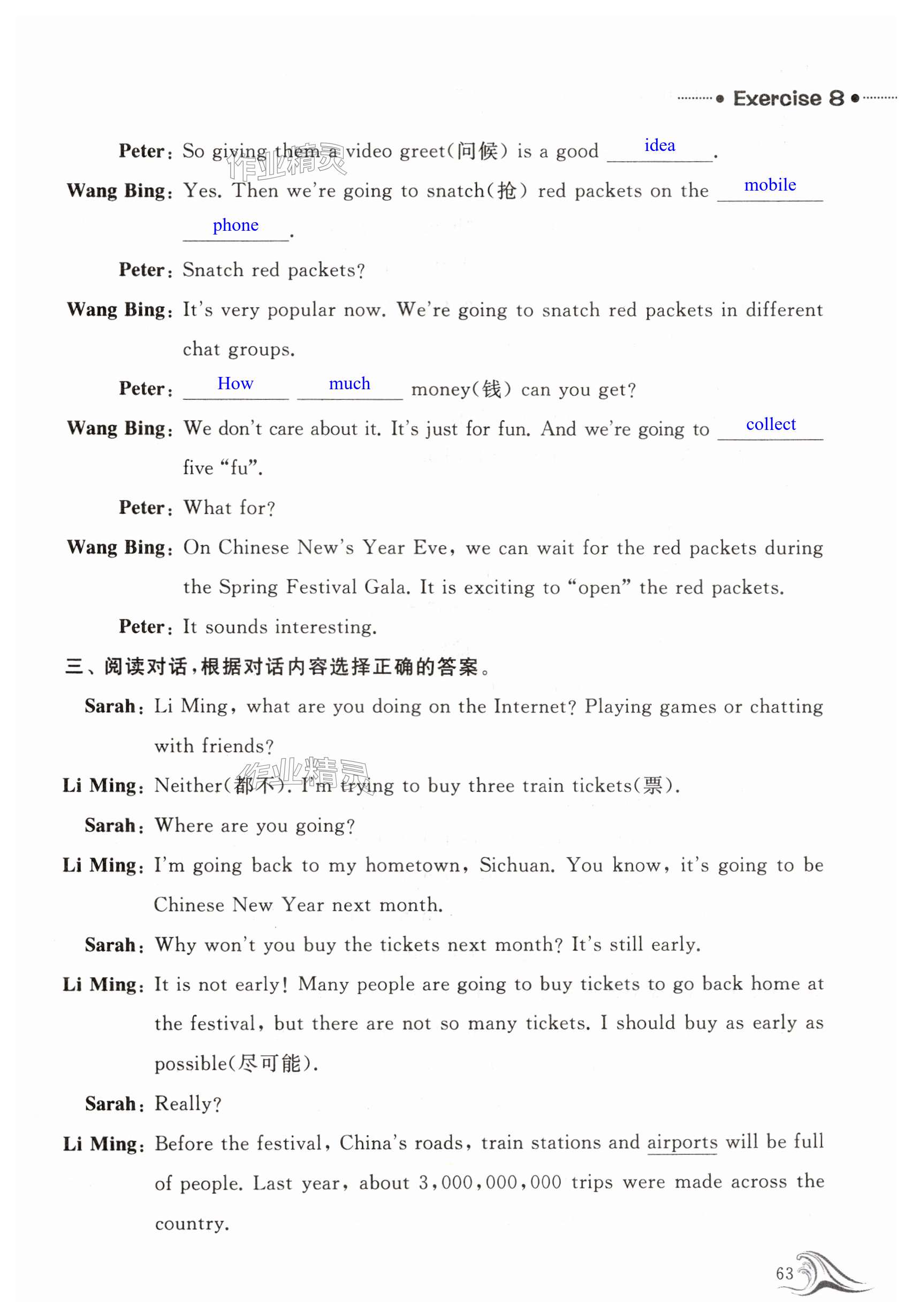 注:目前有些书本章节名称可能整理的还不是很完善,但都是按照顺序排列的,请同学们按照顺序仔细查找。练习册 2024年蓝色时光小升初衔接六年级英语 答案主要是用来给同学们做完题方便对答案用的,请勿直接抄袭。