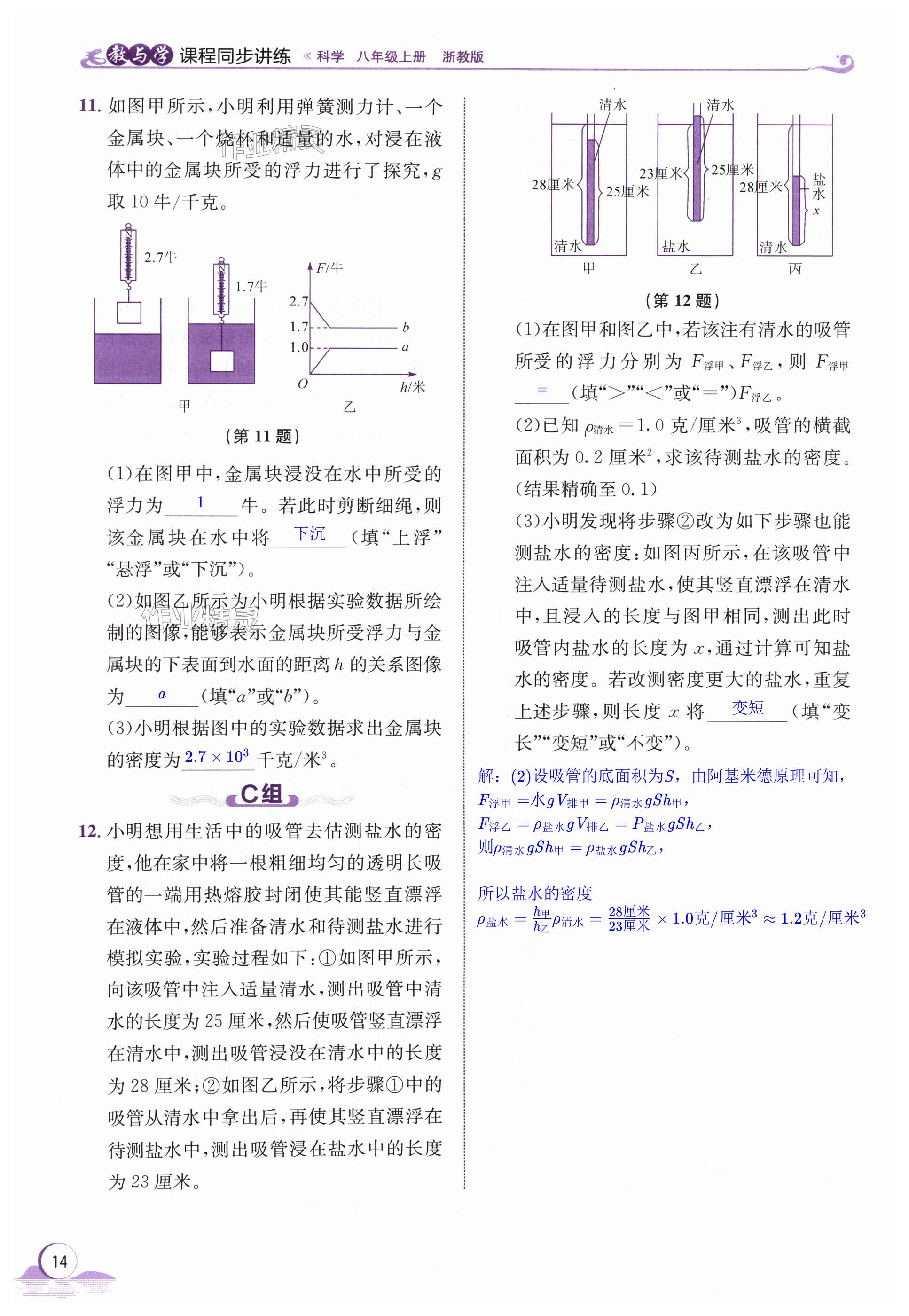 注:目前有些书本章节名称可能整理的还不是很完善,但都是按照顺序排列的,请同学们按照顺序仔细查找。练习册 2024年教与学课程同步讲练八年级科学上册浙教版 答案主要是用来给同学们做完题方便对答案用的,请勿直接抄袭。